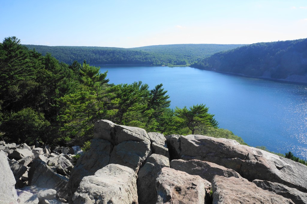 It’s not too often that visitors are able to walk in a mountain range with rocky bluffs dating to 1.6 billion years ago, in addition to a rare freshwater endorheic lake—a body of water situated in a natural depression with no external drainage. And yet one can find such sights in perhaps the most unlikely of places—south-central Wisconsin—at Devil’s Lake State Park. Popular mostly as a summer beach destination, Devil’s Lake also has an extensive trail network, with the best hike being a 5.25-mile circumnavigation of the lake basin, including a short spur to Devil’s Doorway, the most recognizable rock formation in the state. This circuit hike—rated moderate to strenuous—can satisfy much of a day for visitors to the area and is unlikely to disappoint.