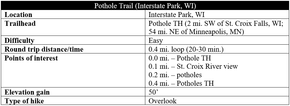 Pingback: Summit Rock, Echo Canyon, & River Bluff Trail Loop (Interstate Park, WI) | Live and Let Hike