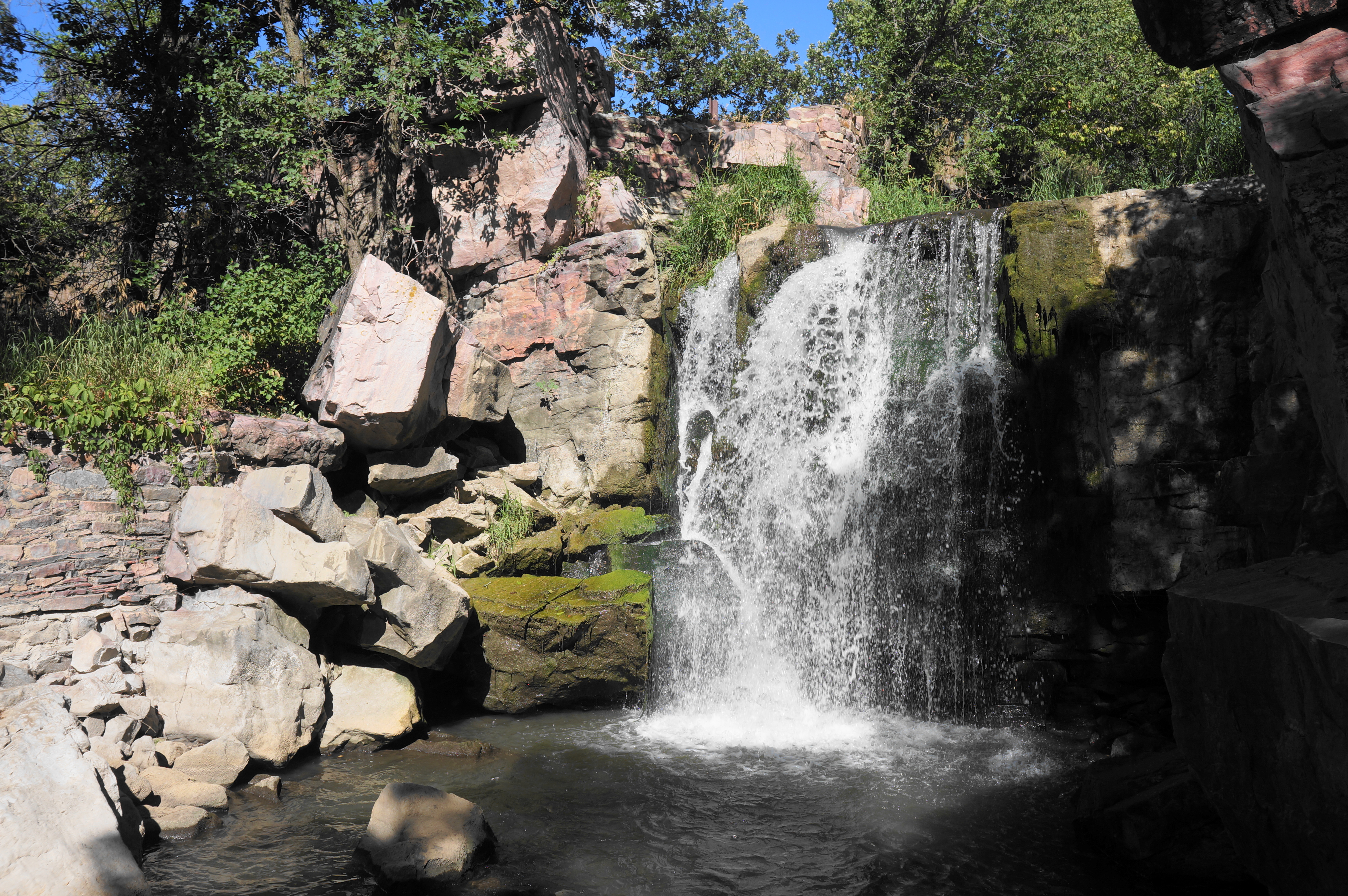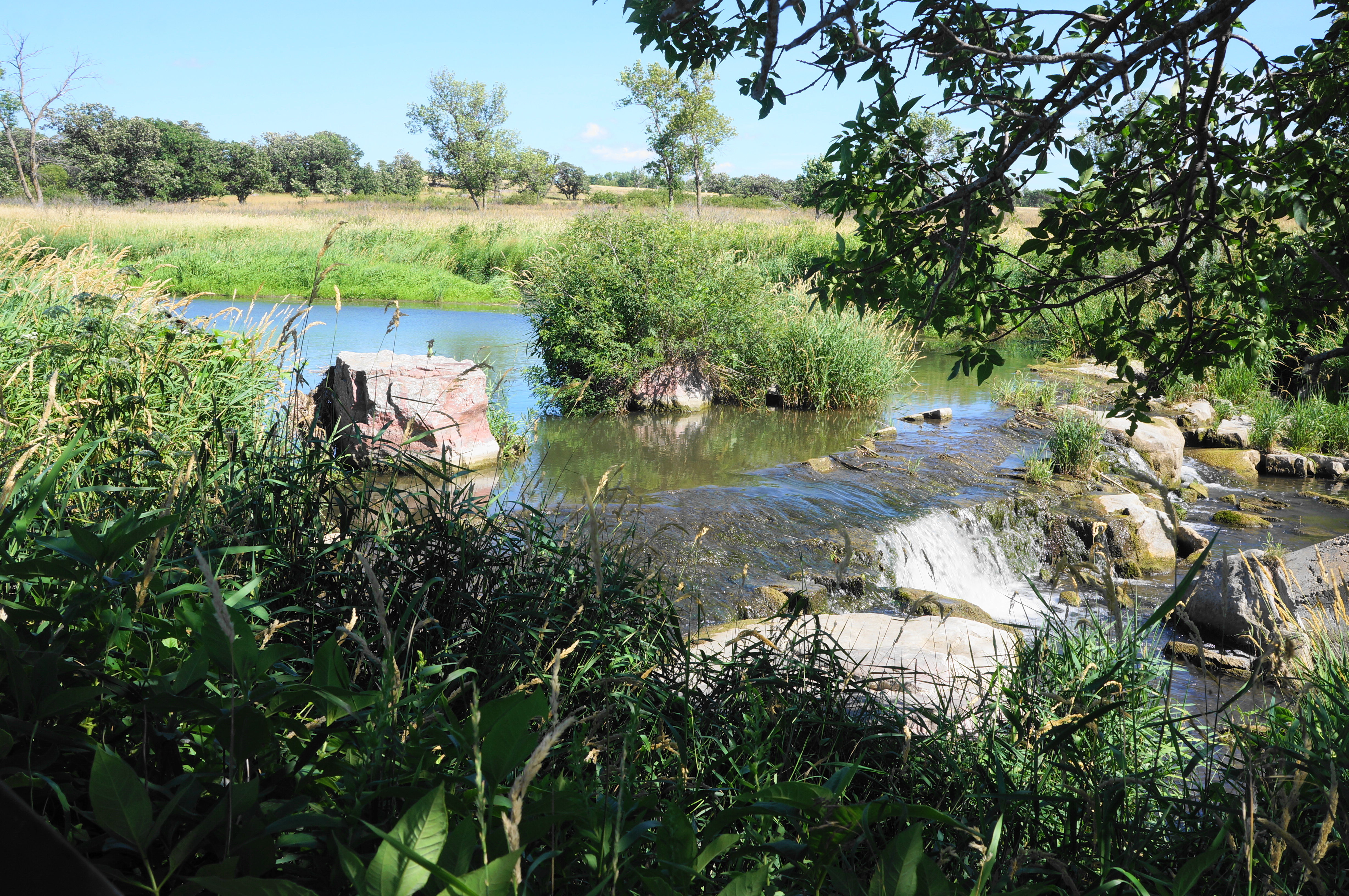Soon the path rounds a left-hand bend, entering a shady glen bisected by peaceful Pipestone Creek. Traverse two bridges, then continue to skirt a marshland until a short turnoff left, which offers views of the Spotted Quarry, where American Indians have mined the thin layer of pinkish pipestone, exposed in this area. The rubble pile you see ahead is composed primarily of the Sioux Quartzite, chipped away to access the desired pipestone. In winter and spring, much of this quarry is filled with water; quarriers tend to wait until late summer and fall to mine the outcrop.