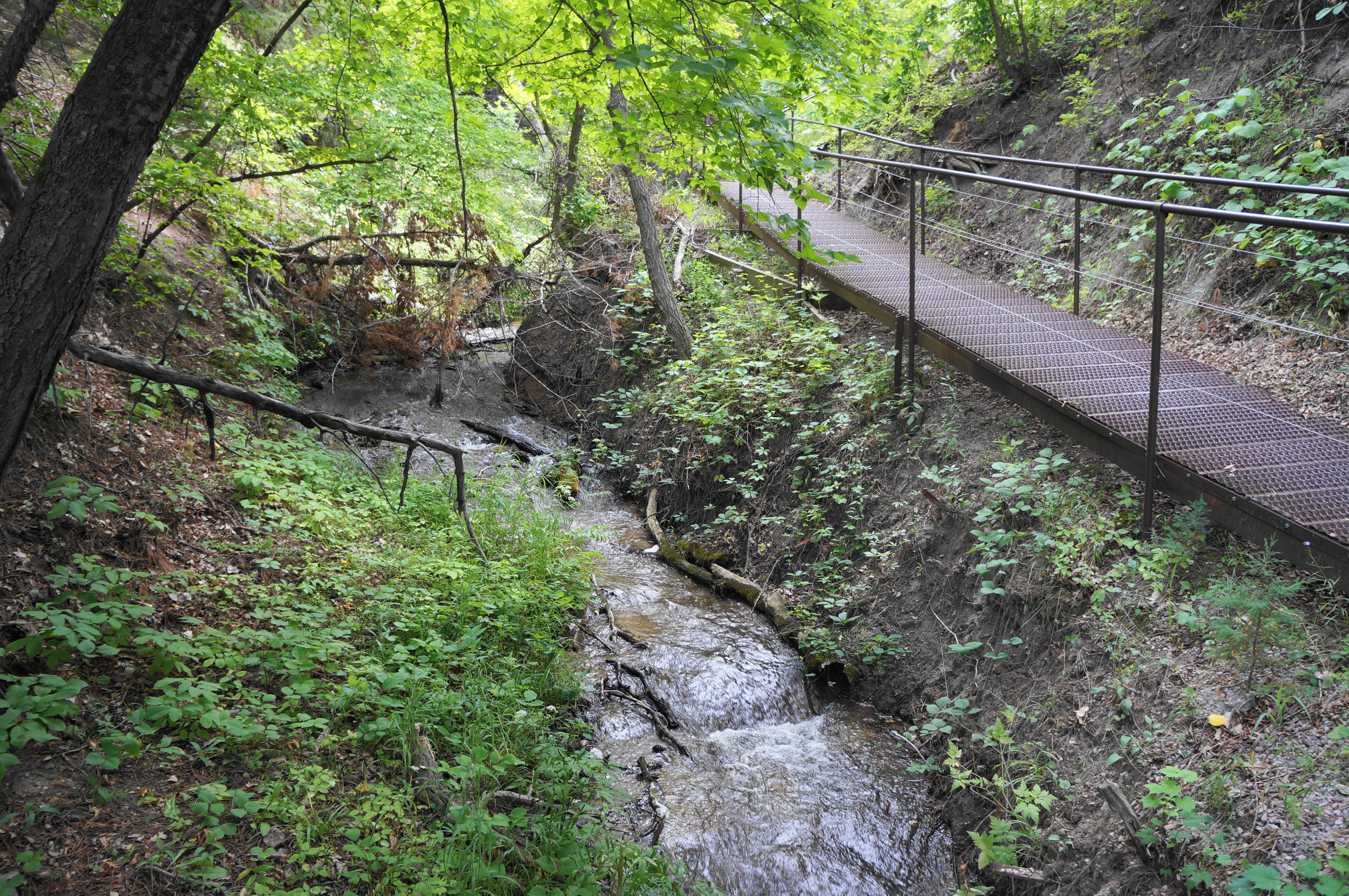 From here it is a short walk back to the start, culminating at a sidewalk paralleling the gravel circle. All told, this 0.8-mile hike has some ups and downs but is relatively easy walking, packing a good bang for its buck. Combine with a trip to nearby Smith Falls State Park for a nice half- to full-day of activities in the Valentine area.
