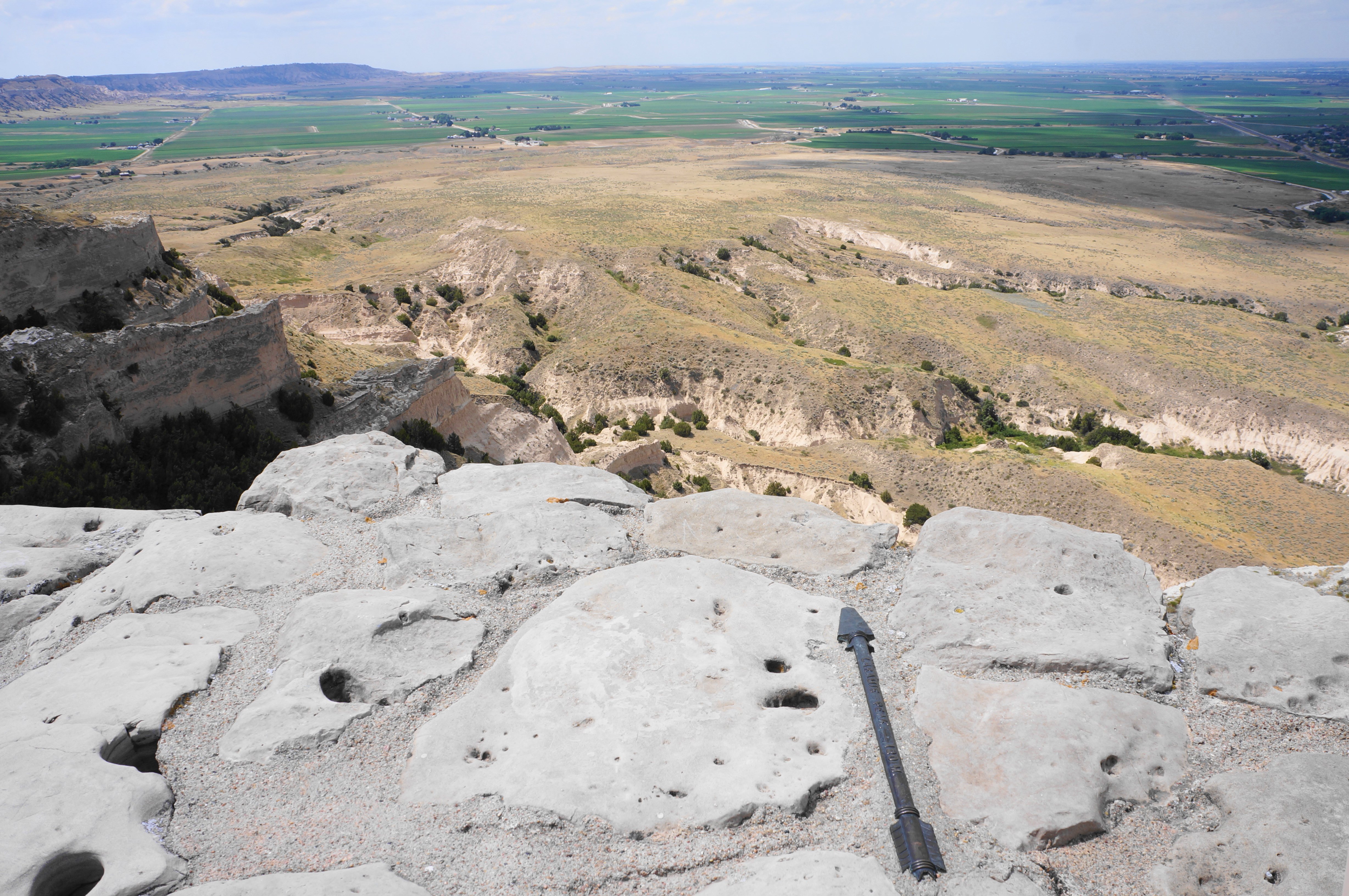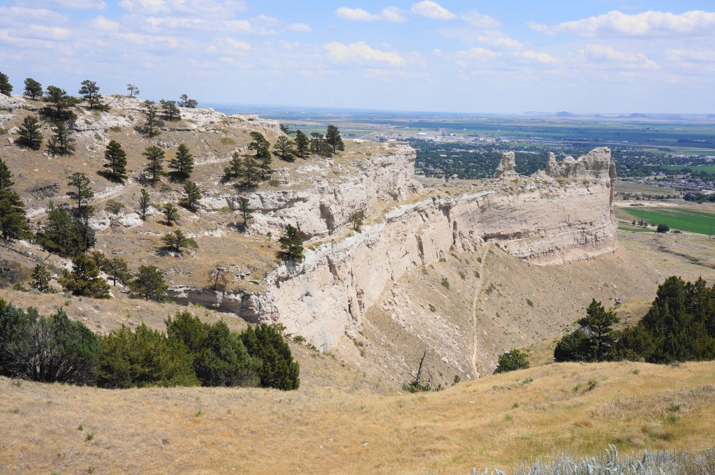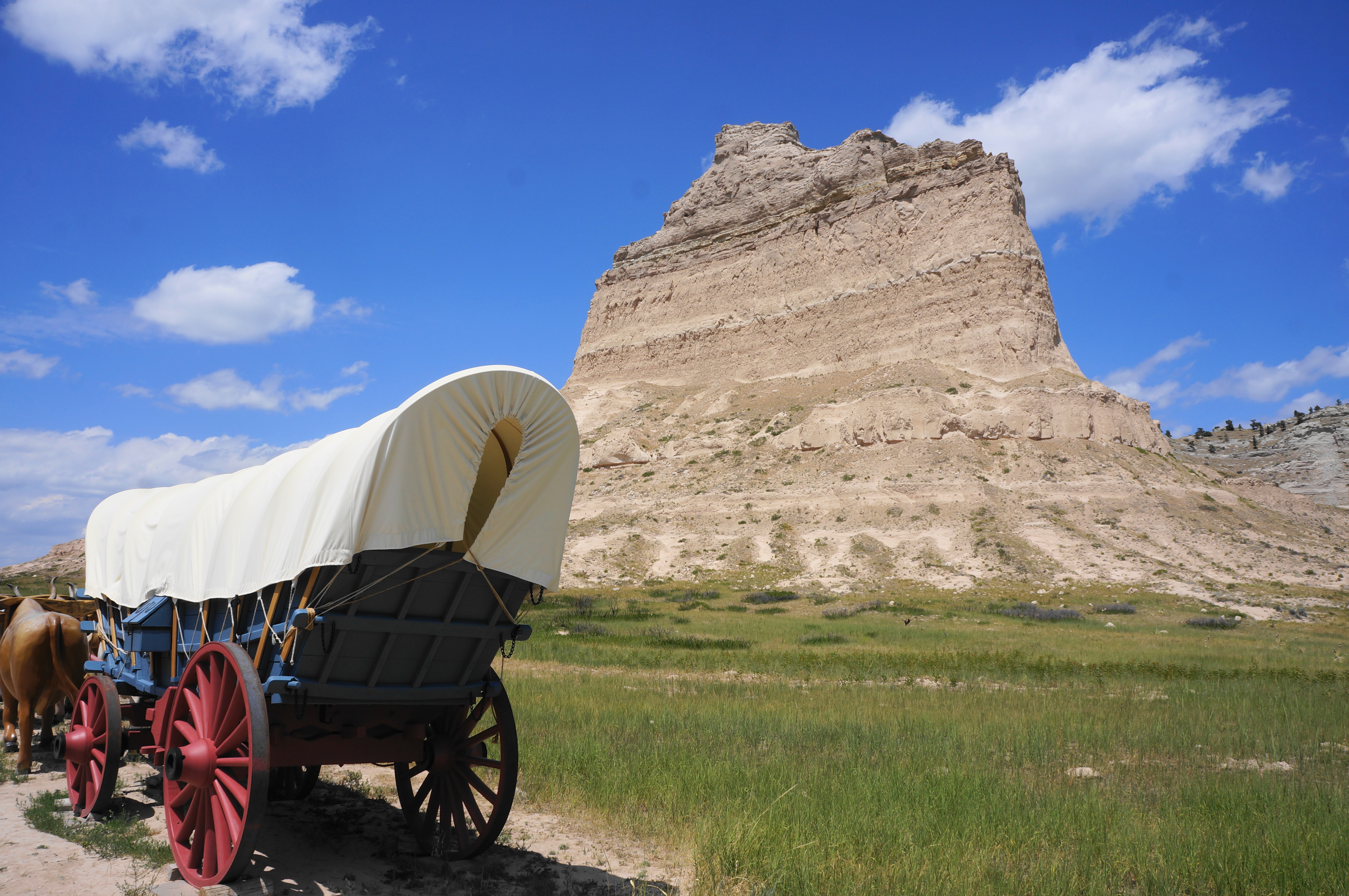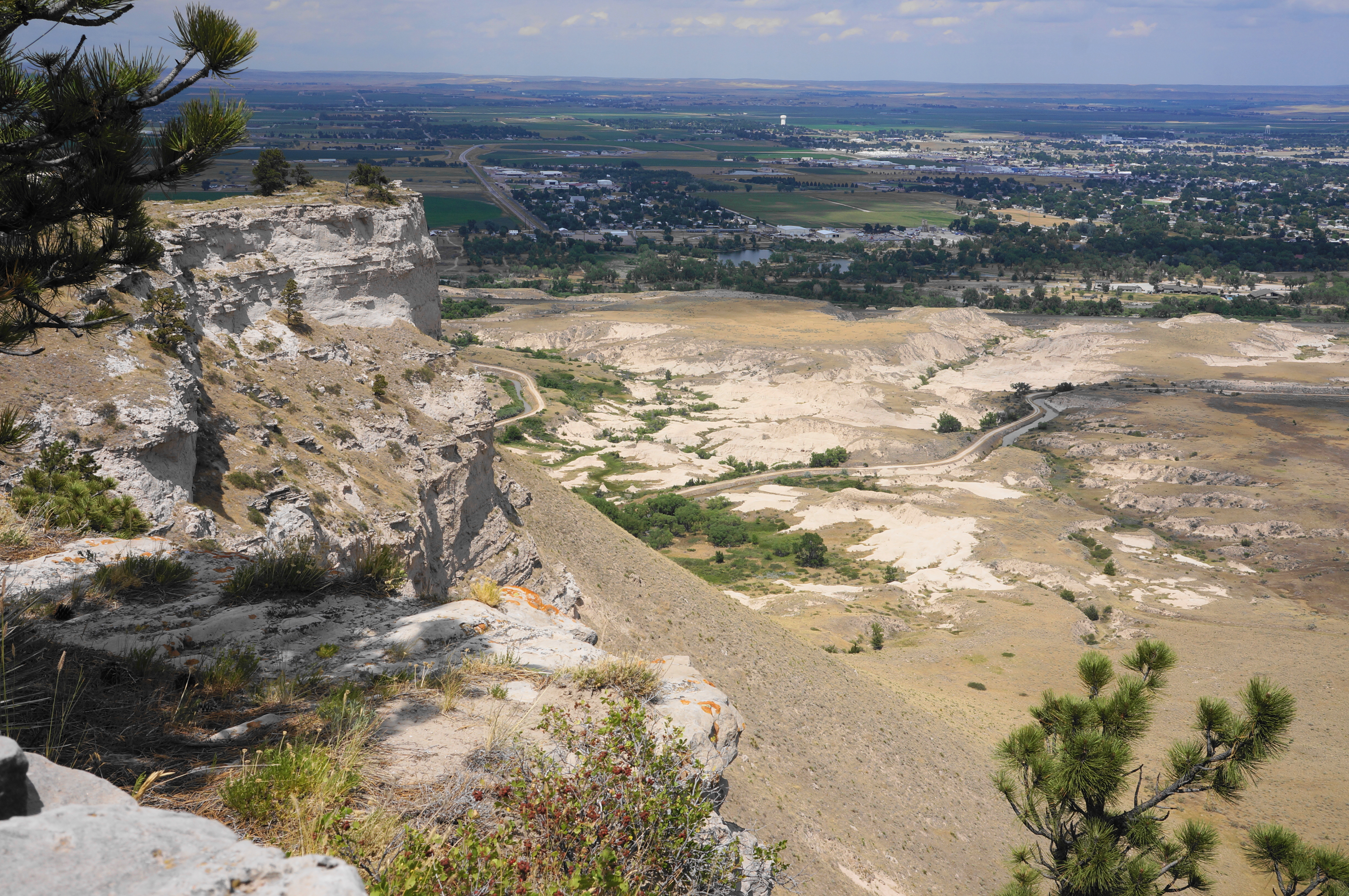 A key milestone along the Oregon and California historic trails, the chalky hightops of Scotts Bluff rise skyward above the broad Platte River Valley in western Nebraska. Here pioneers heading west along the North Platte had to detour south to evade some nasty badlands, bringing them up and over Mitchell Pass, wedged between the impressive towers of Scotts Bluff and South Bluff. Today the area is protected as Scotts Bluff National Monument, a 3,000-acre site that includes a scenic drive, several overlooks, and a small trail system. Panoramic views greet visitors at North and South Overlooks, and ambitious travelers can hike to and from the Visitor Center on the steep Saddle Rock Trail. Scotts Bluff is a must-visit for those passing through the Nebraska panhandle.