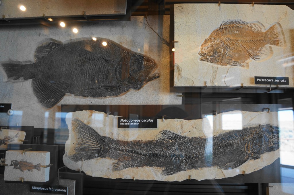 Today, the landscape at Fossil Butte resembles a semi-arid desert, with few tall trees amid the scrubby and windswept terrain. But this was once part of the vast 1,500-square mile “Fossil Lake,” which gave life to a variety of species. Quarrying in the area, which ran from the late 19th century to today produced a bonanza of spectacularly-preserved fossils, some of which are on display in the Visitor Center today.