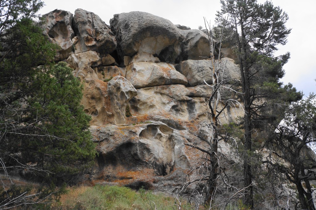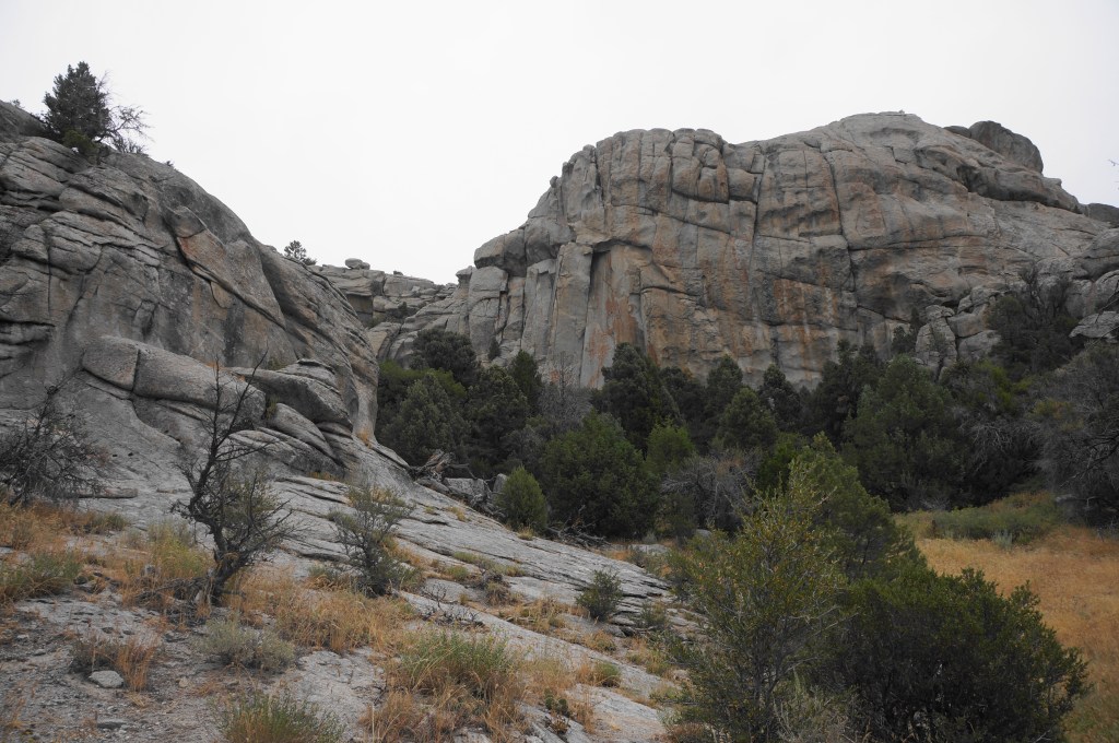 Continue down a set of switchbacks, then cross to the west side of North Fork Circle Creek again and take a hard left at 2.75 miles, passing another outcrop on the right. The high unnamed outcrop to the east conceals a climbing area just beyond humorously called “Beef Jello.”