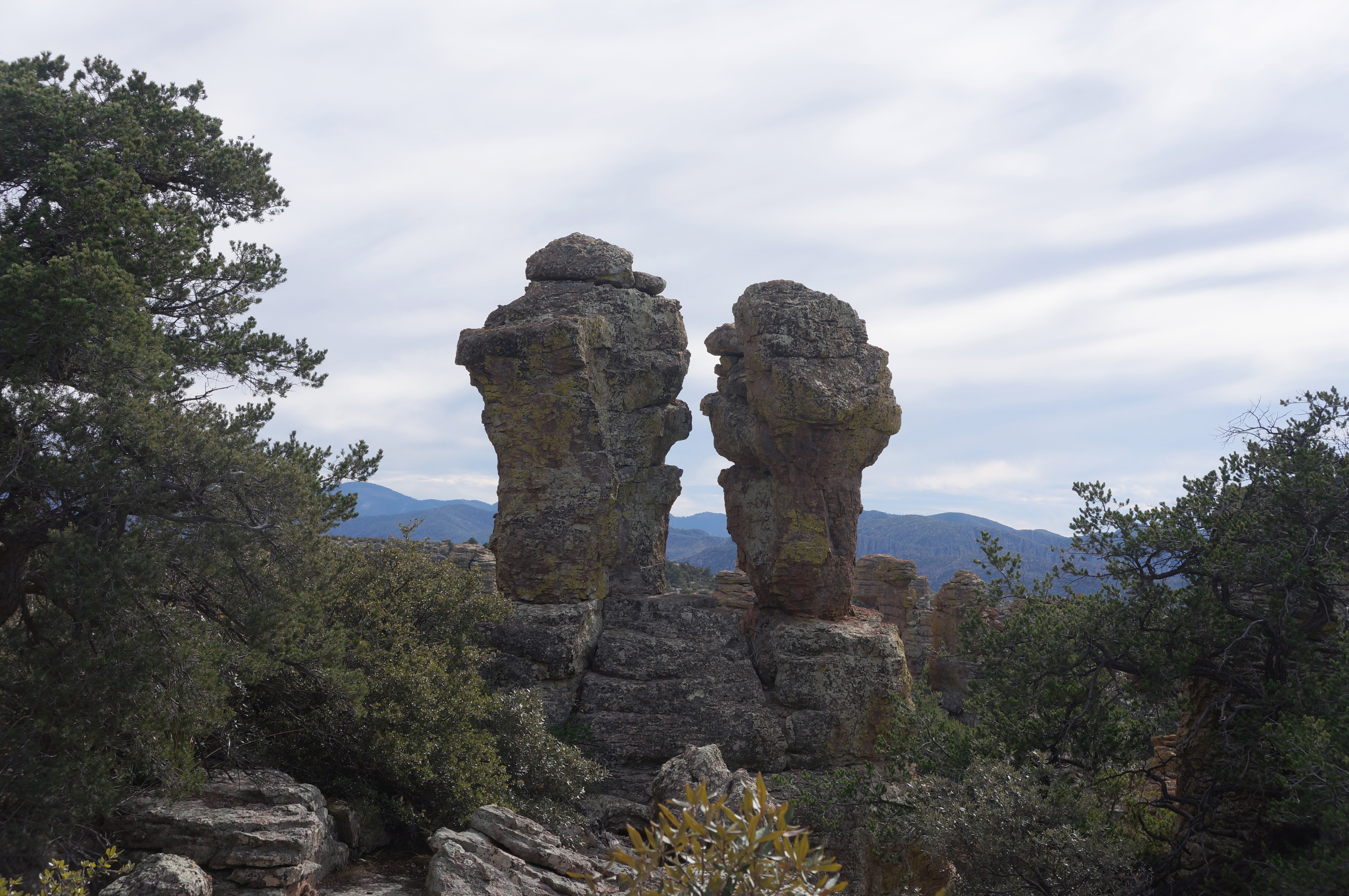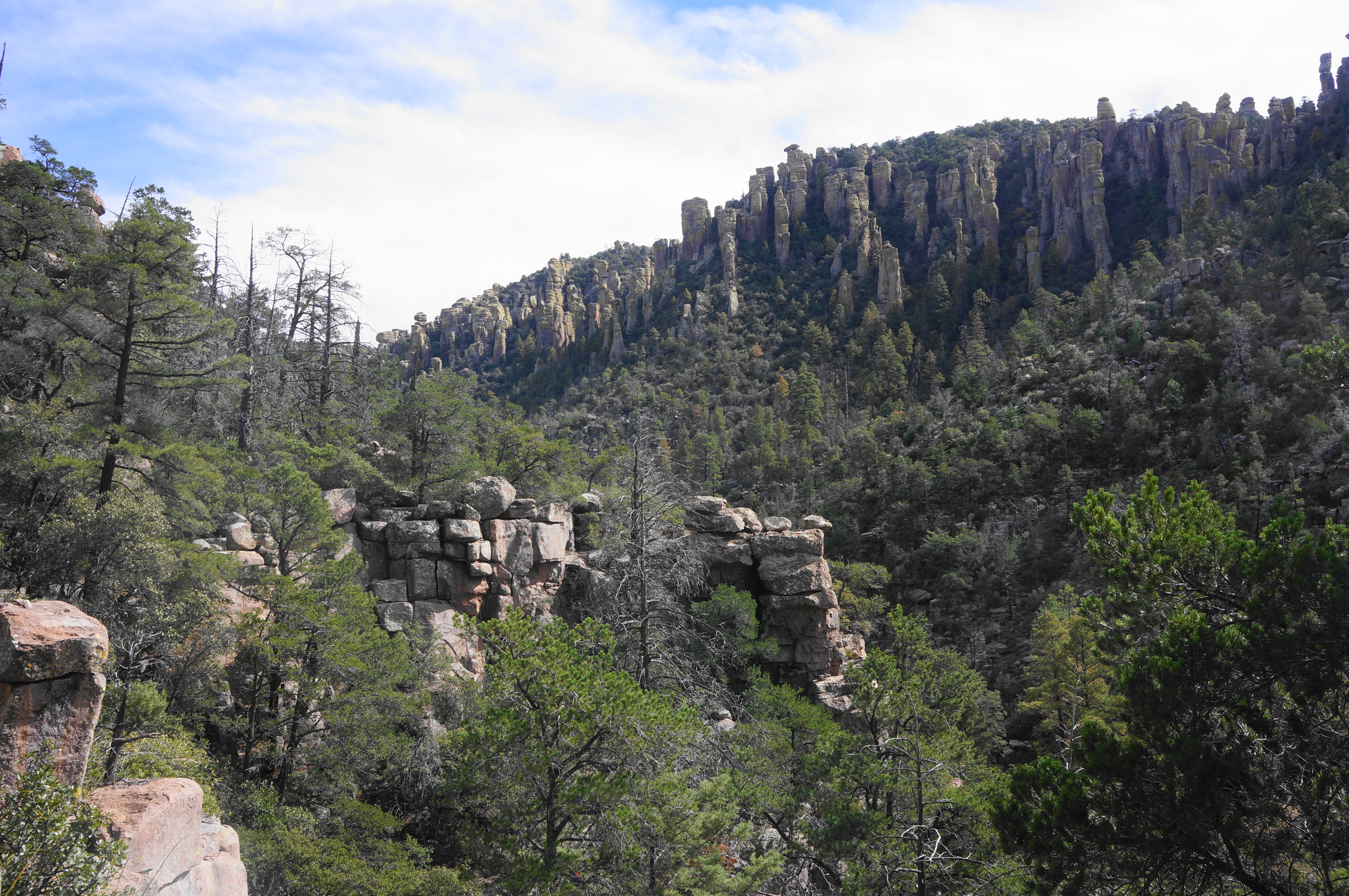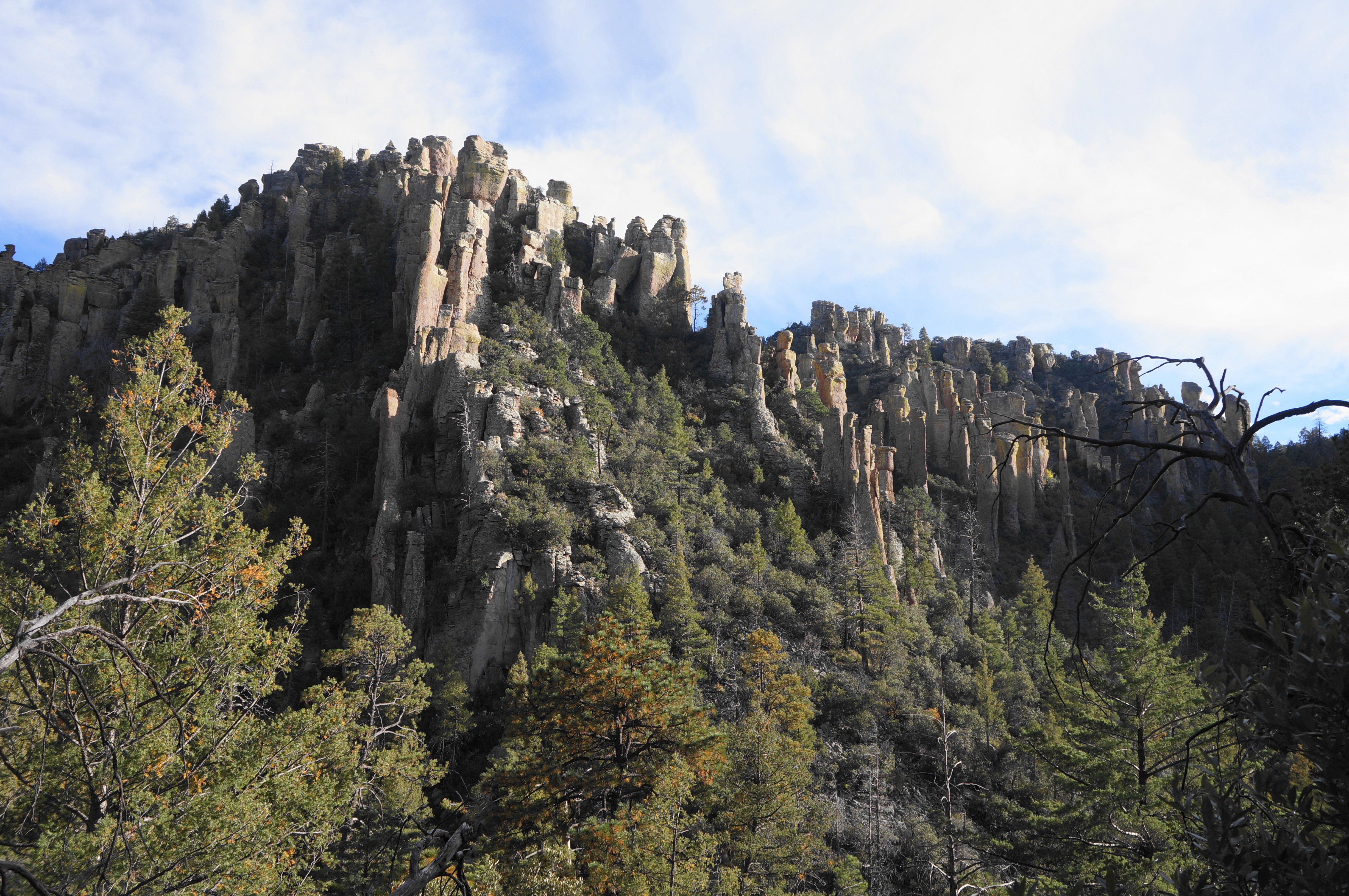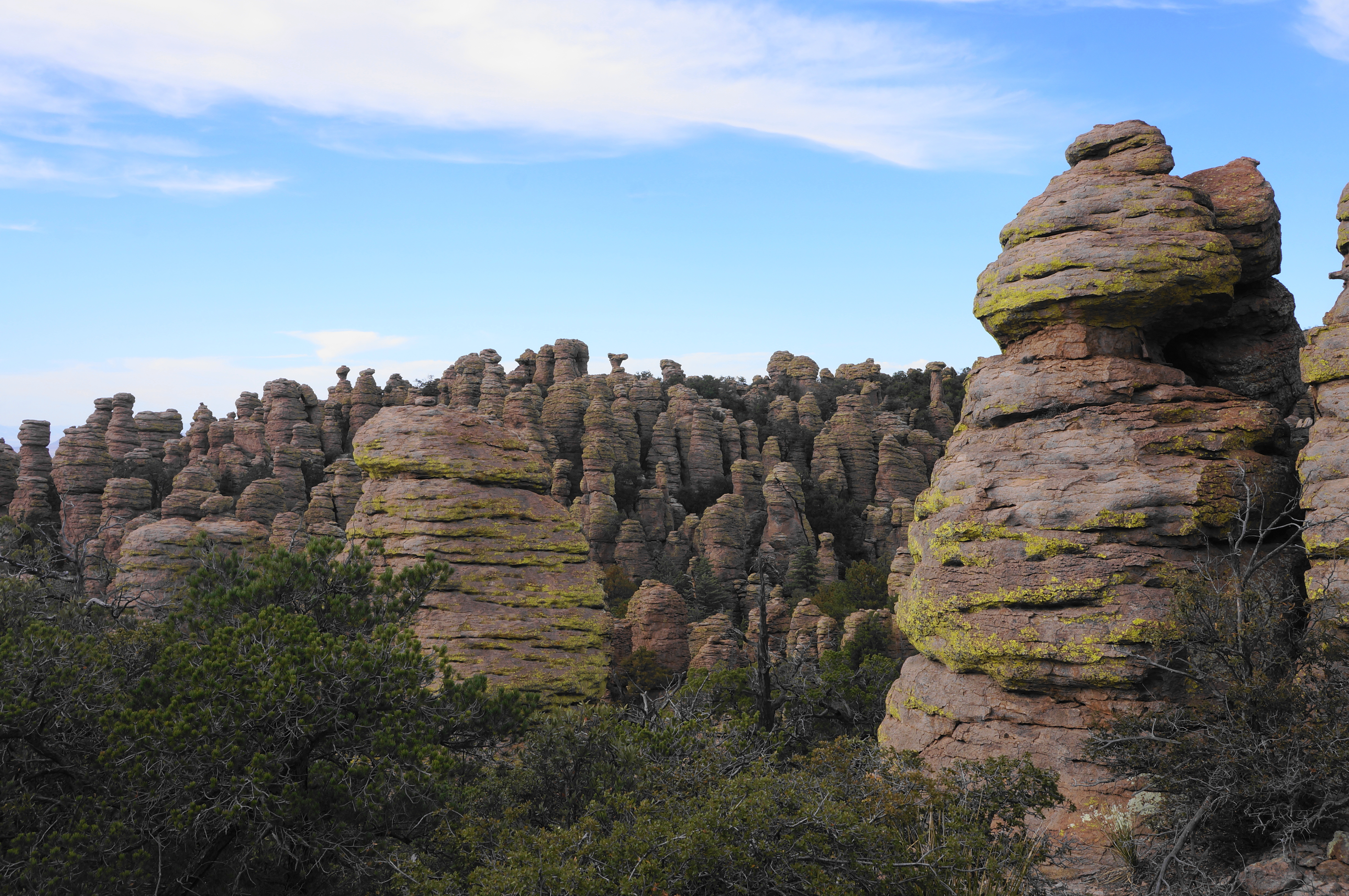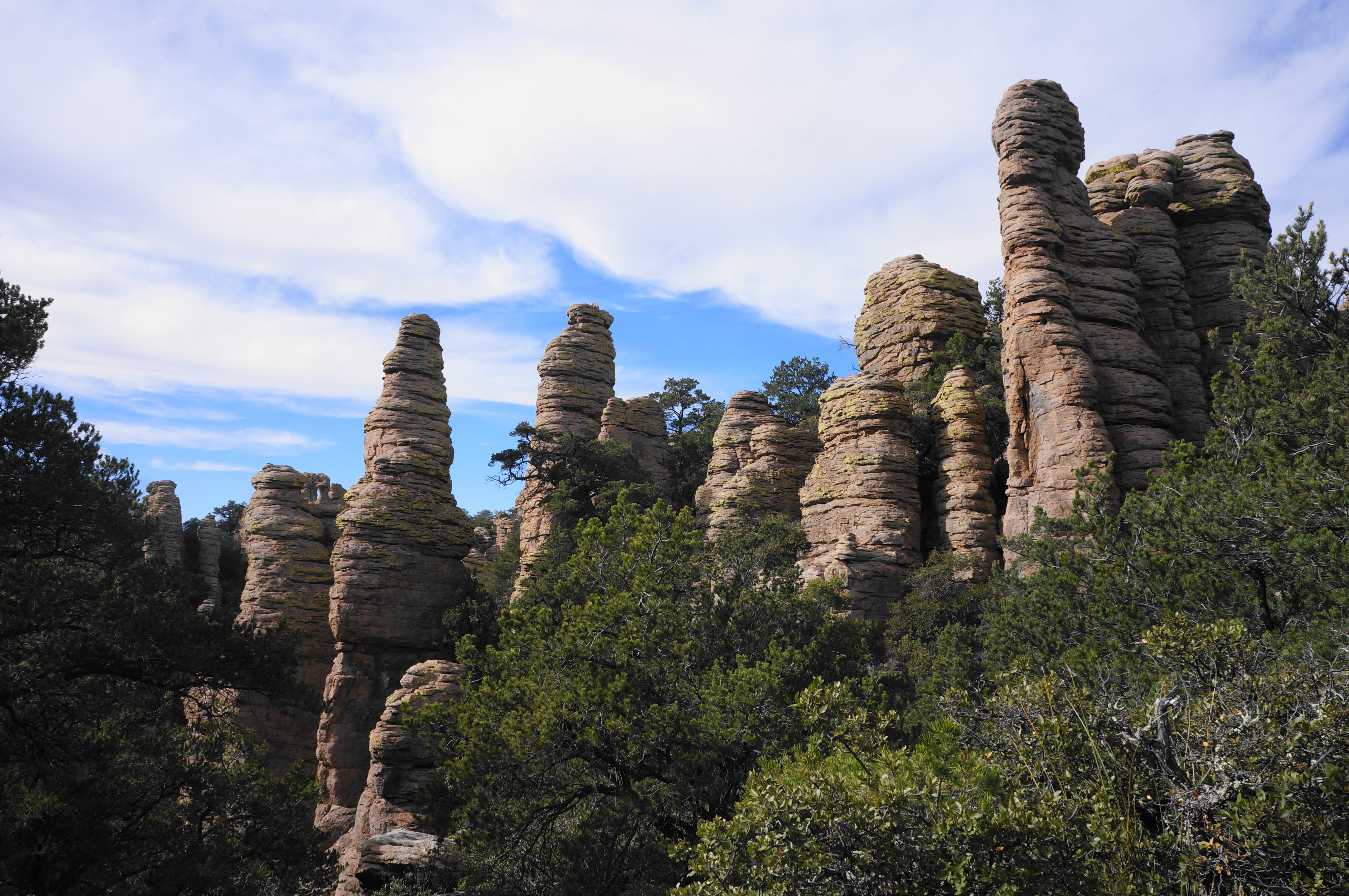 As one approaches the Chiricahuas, however, visitors quickly realize that this is no usual mountain range. Rather, the opening of Bonita Canyon—which offers passage into the park—is lined with tall sides dotted with colorful rhyolite, a volcanic rock layer thought to have been deposited around 27 million years ago. The volcanic eruptions left behind a caldera, and the rhyolite tuff has since eroded into wild shapes, with the largely concentration situated at the heads of Bonita and Rhyolite Canyons.