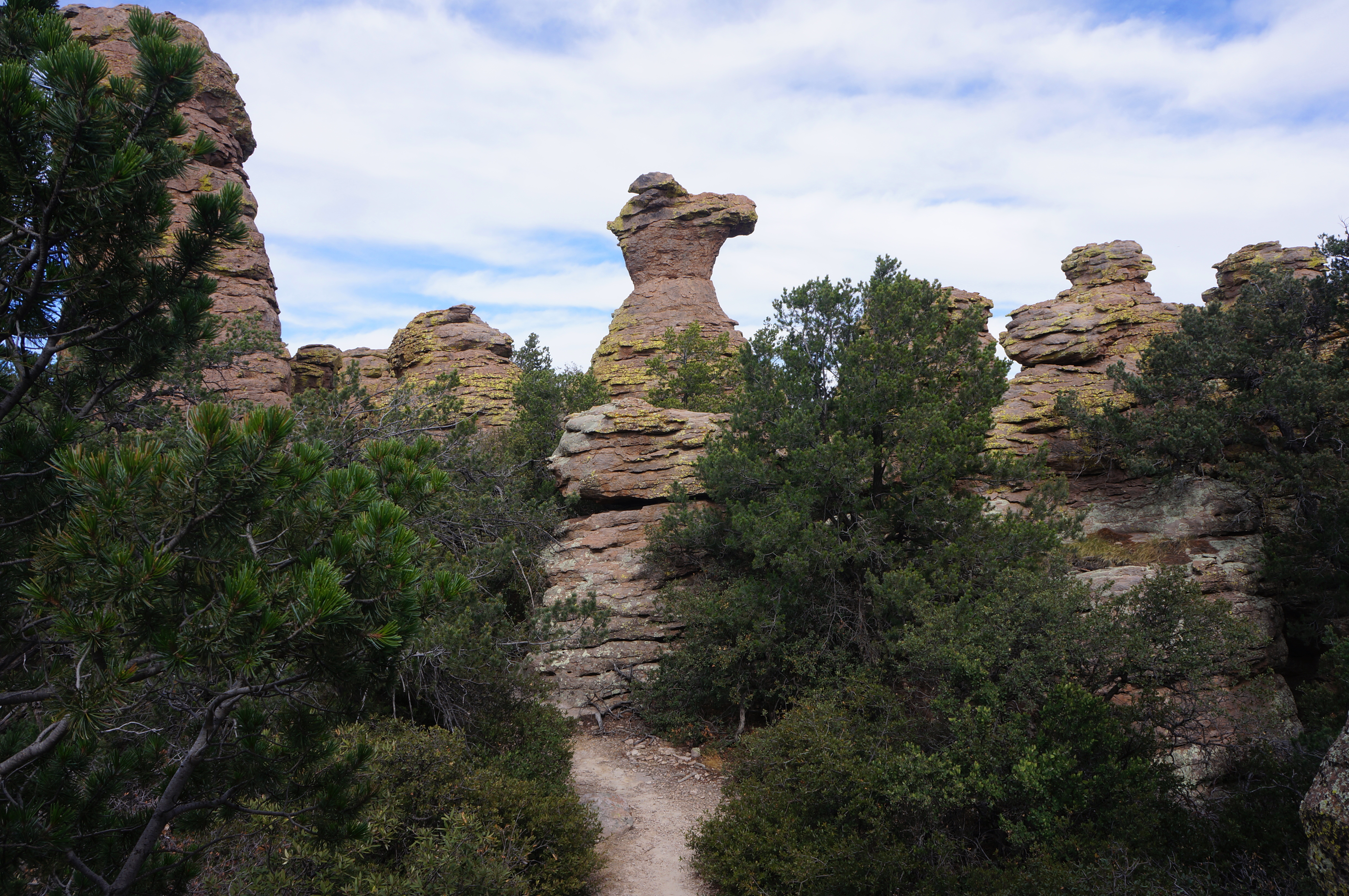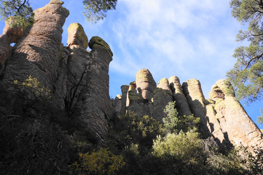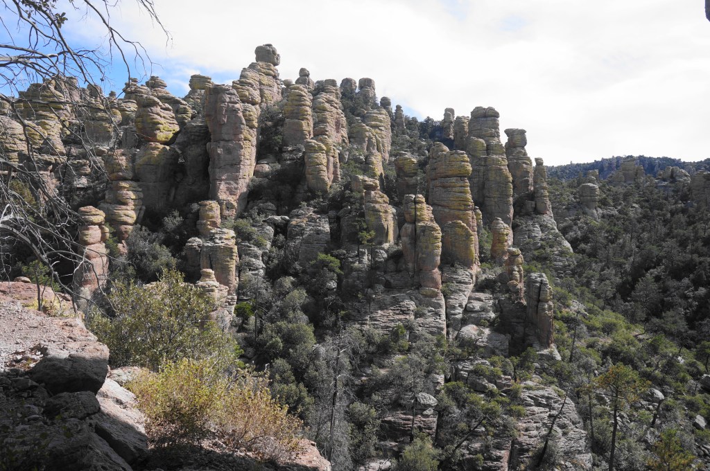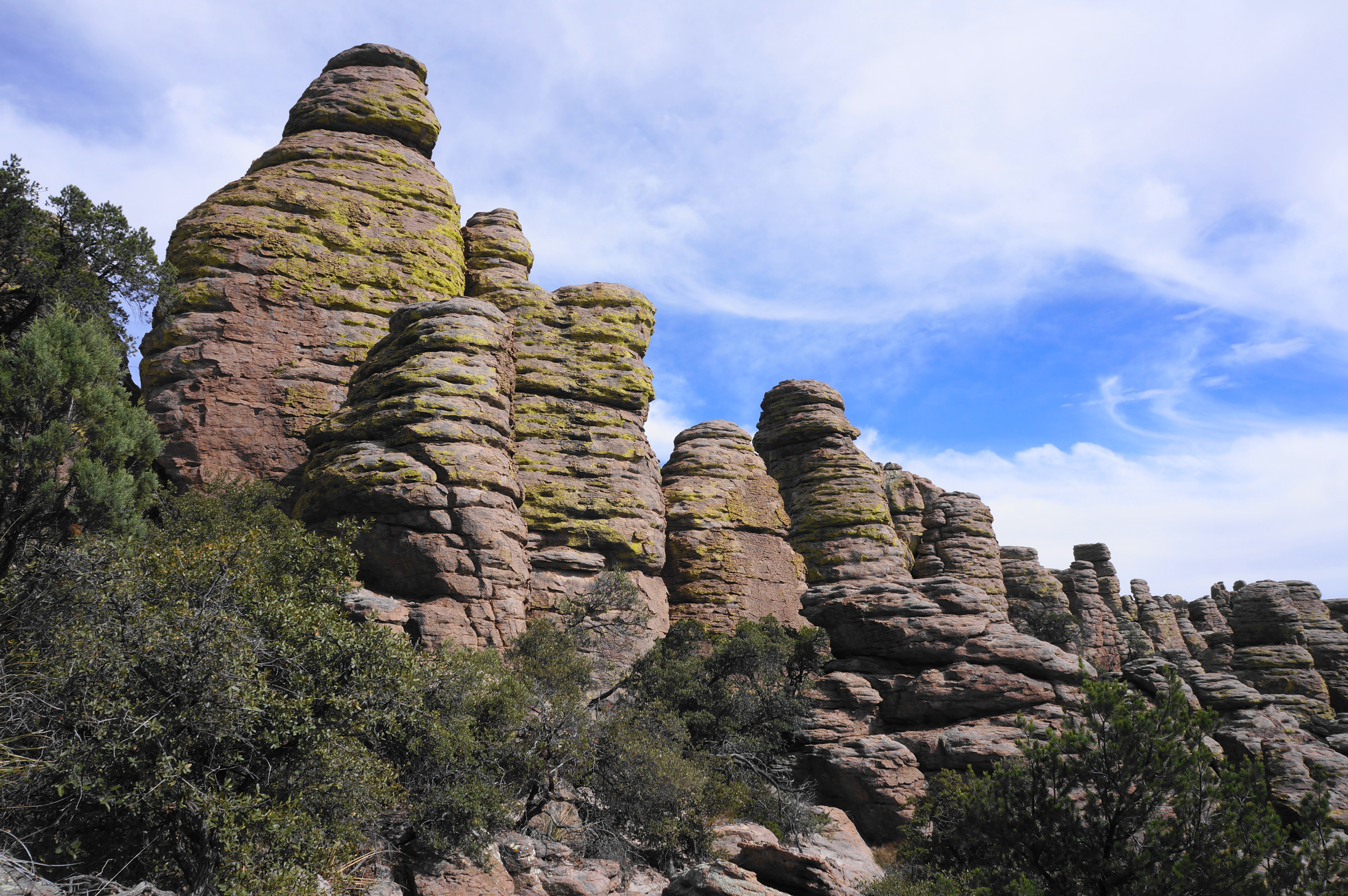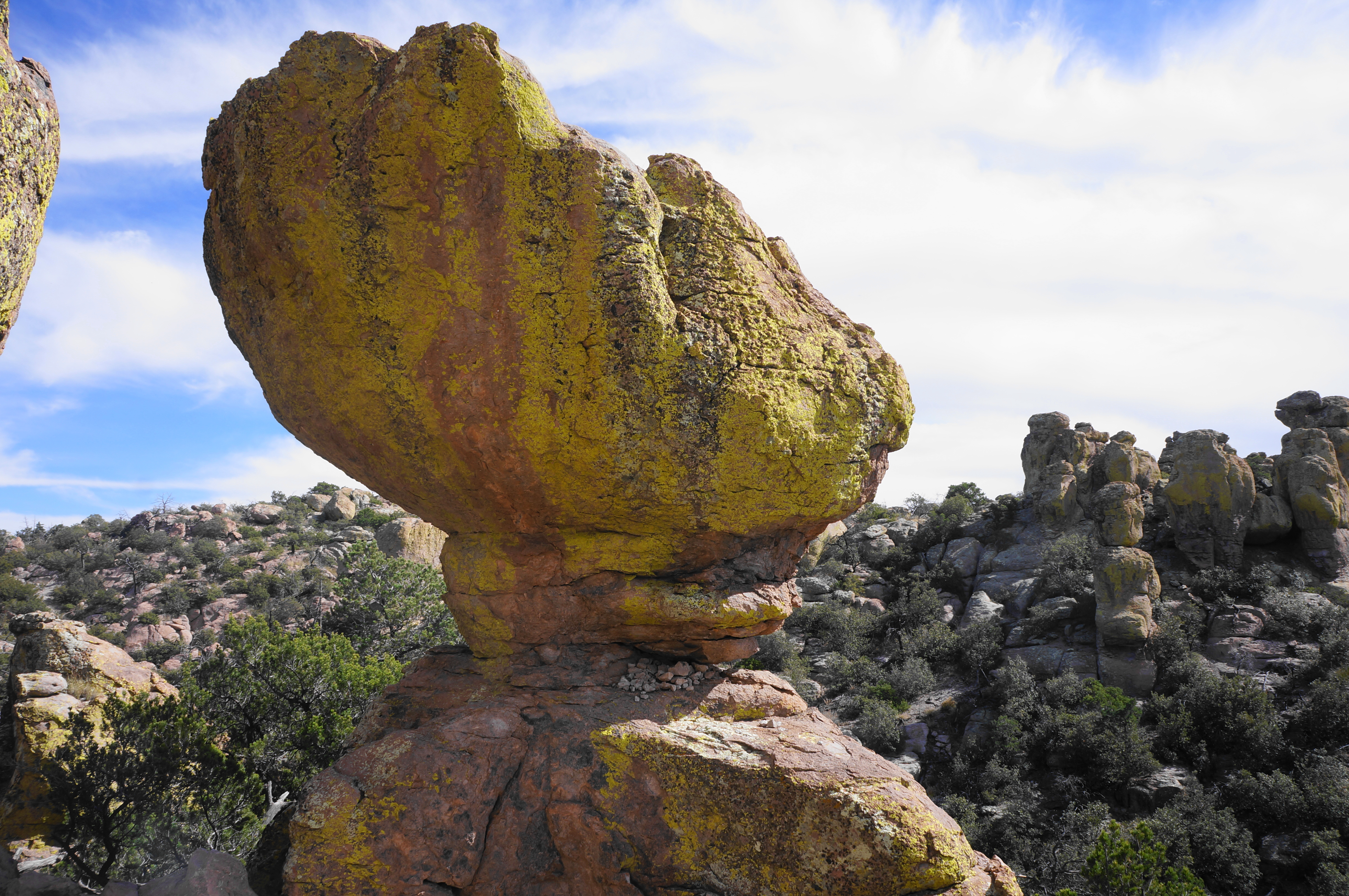 As one approaches the Chiricahuas, however, visitors quickly realize that this is no usual mountain range. Rather, the opening of Bonita Canyon—which offers passage into the park—is lined with tall sides dotted with colorful rhyolite, a volcanic rock layer thought to have been deposited around 27 million years ago. The volcanic eruptions left behind a caldera, and the rhyolite tuff has since eroded into wild shapes, with the largely concentration situated at the heads of Bonita and Rhyolite Canyons.