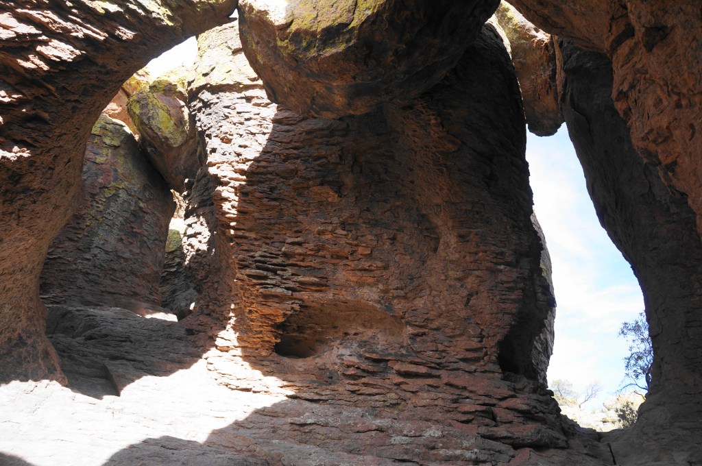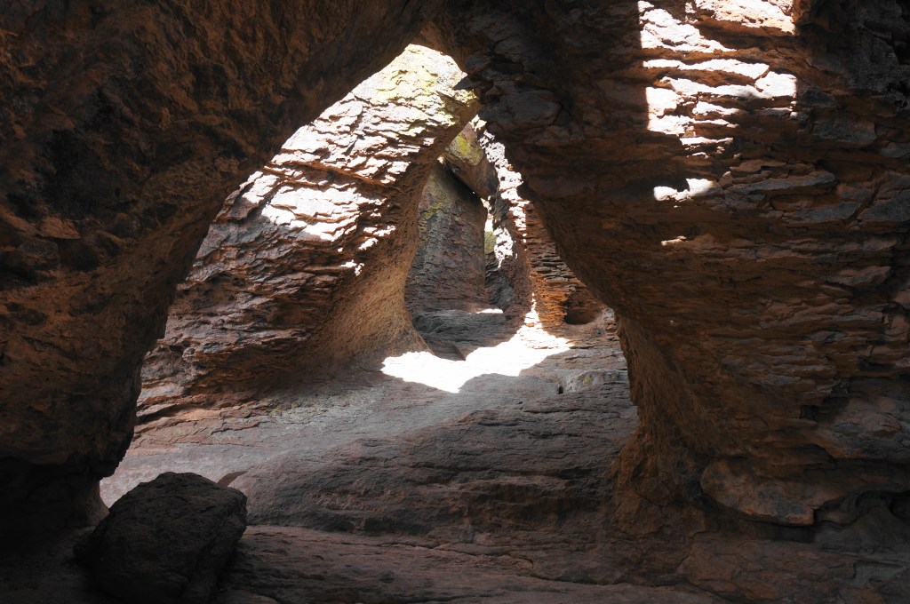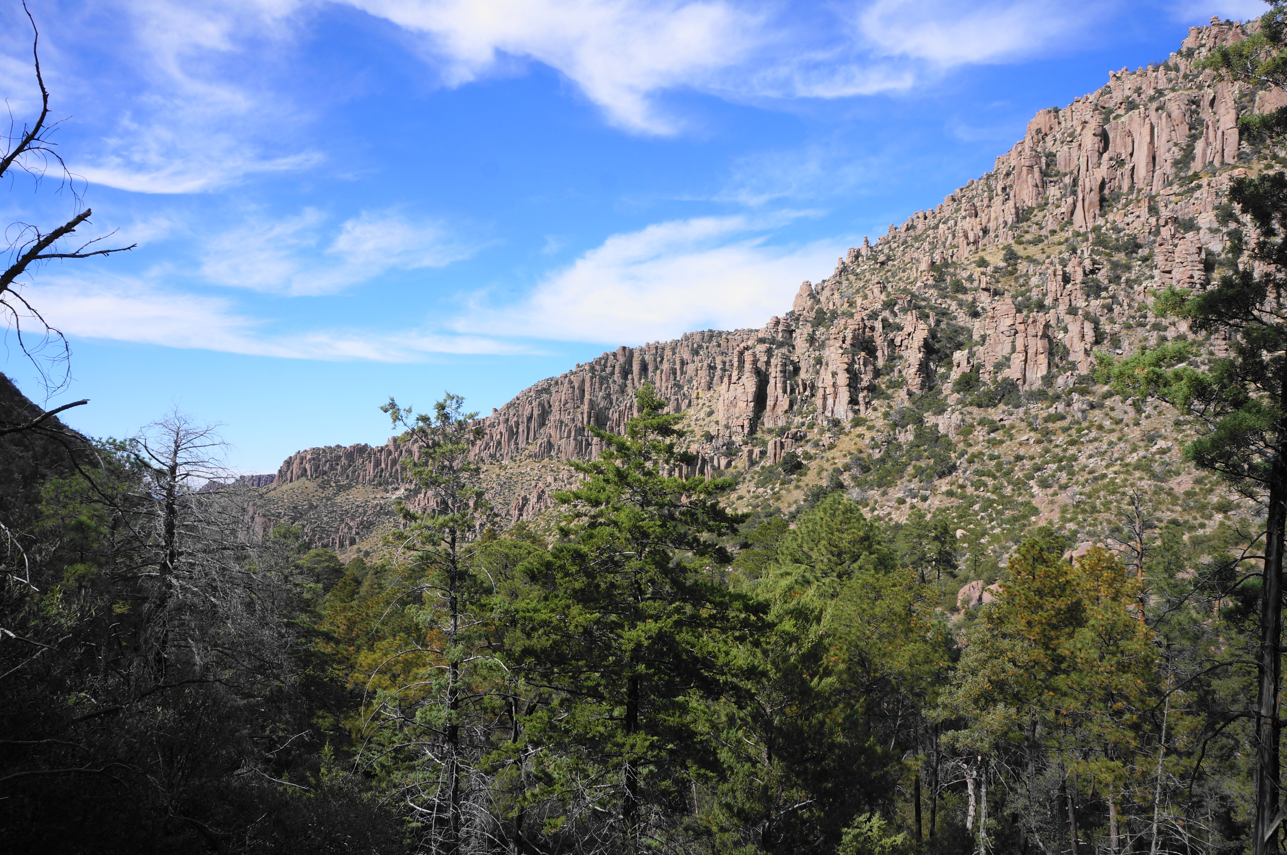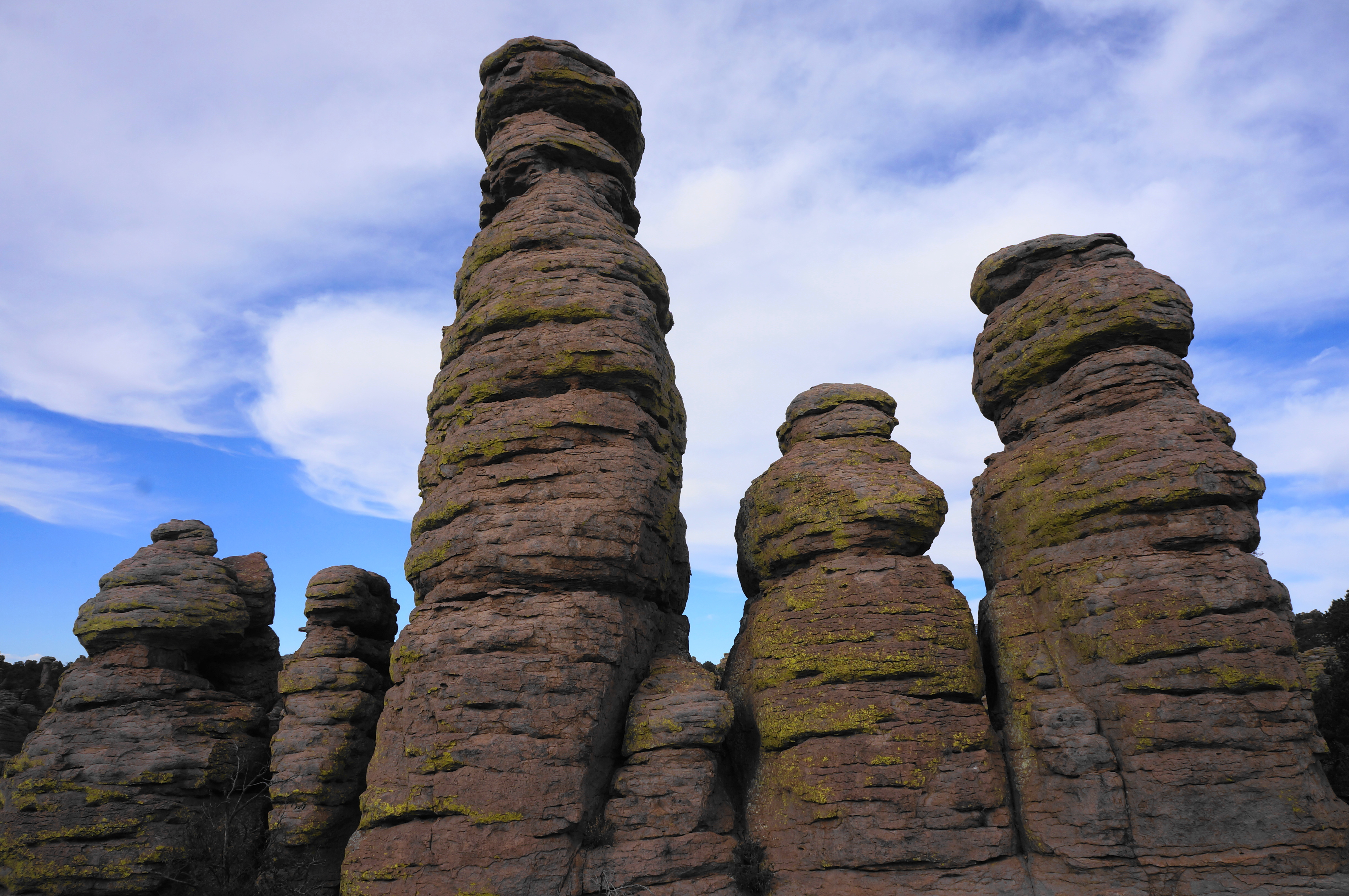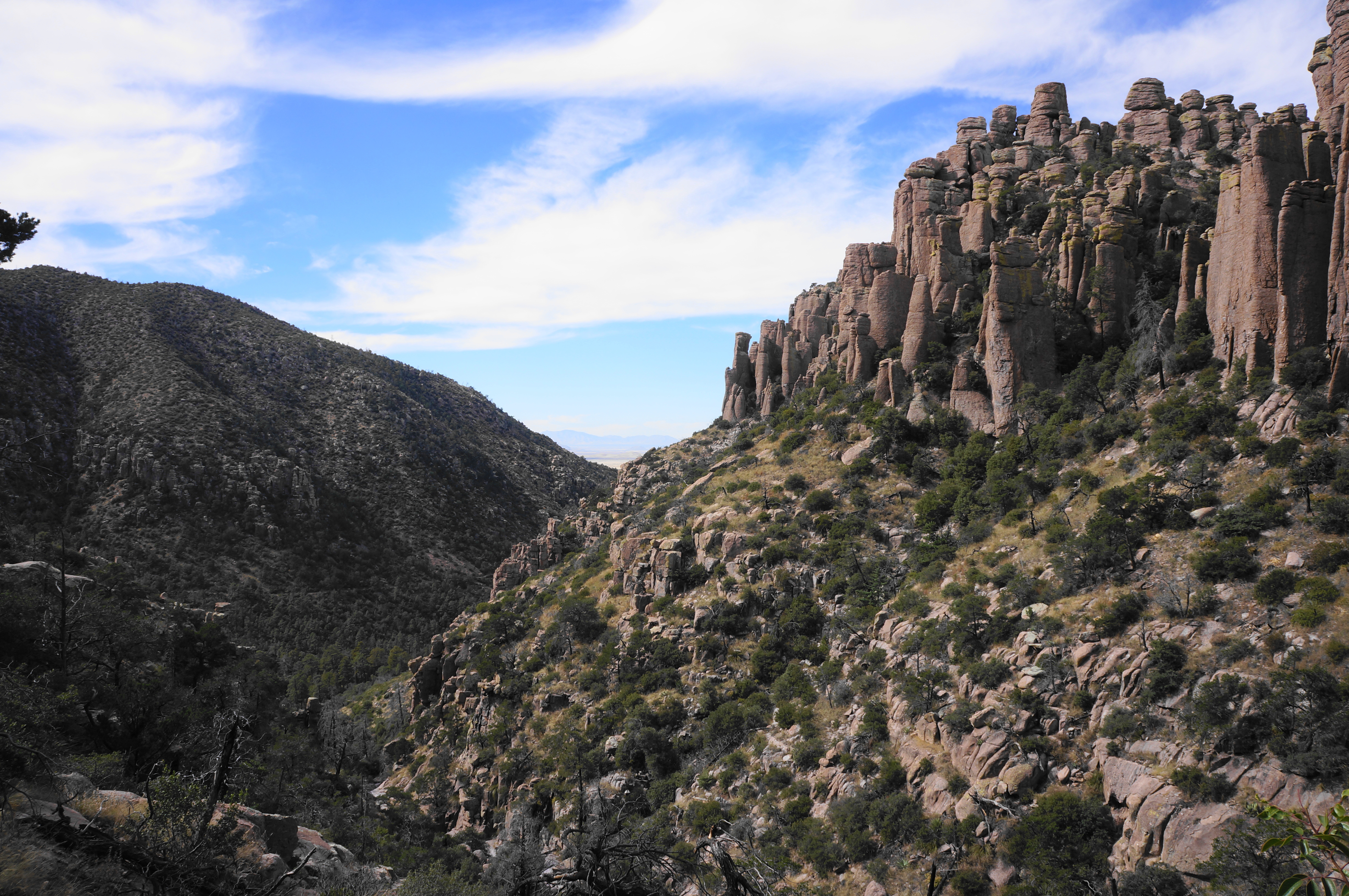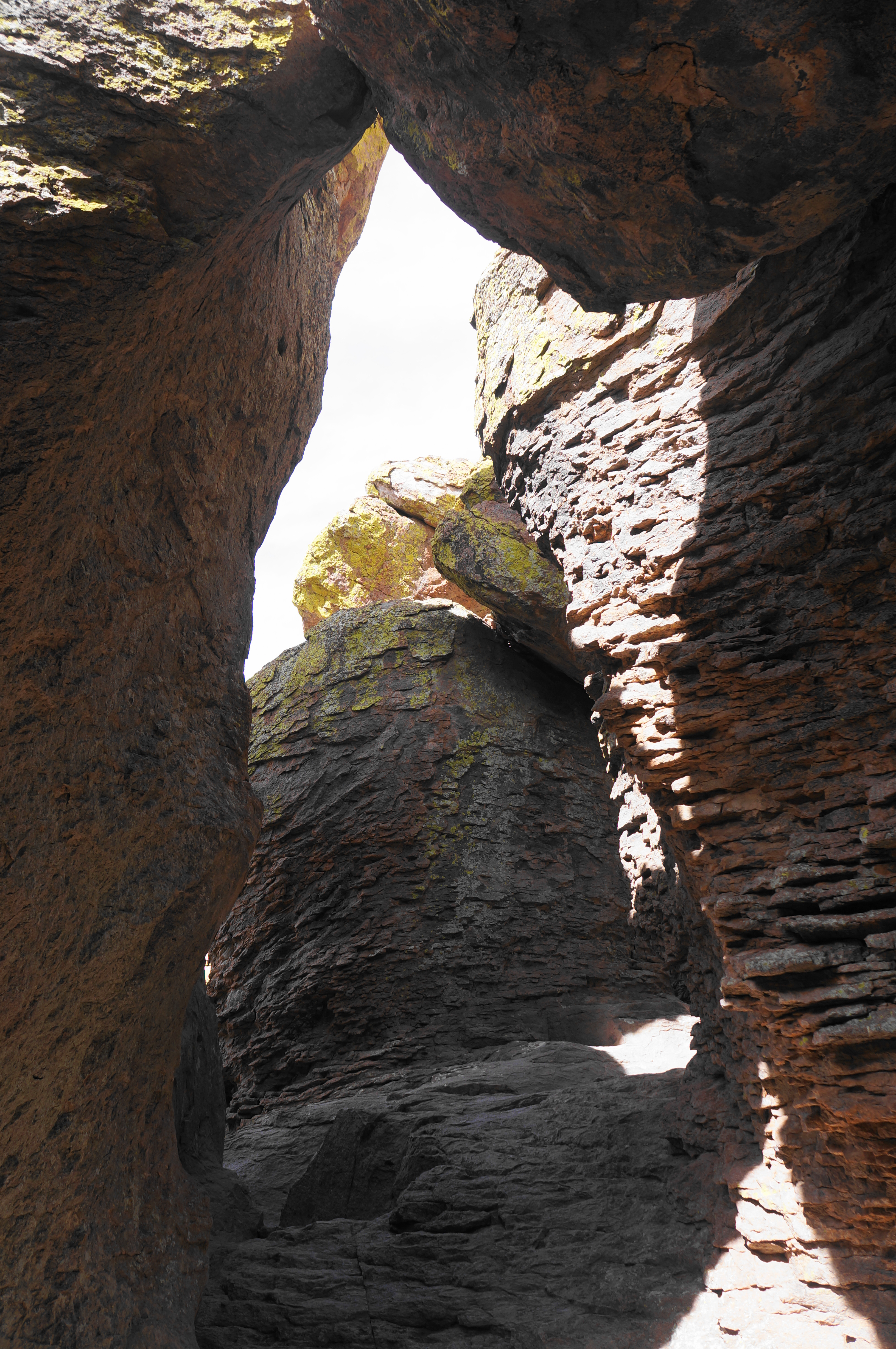 As one approaches the Chiricahuas, however, visitors quickly realize that this is no usual mountain range. Rather, the opening of Bonita Canyon—which offers passage into the park—is lined with tall sides dotted with colorful rhyolite, a volcanic rock layer thought to have been deposited around 27 million years ago. The volcanic eruptions left behind a caldera, and the rhyolite tuff has since eroded into wild shapes, with the largely concentration situated at the heads of Bonita and Rhyolite Canyons.