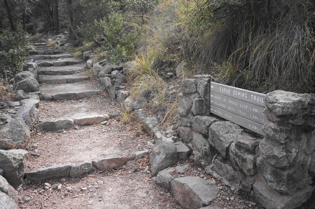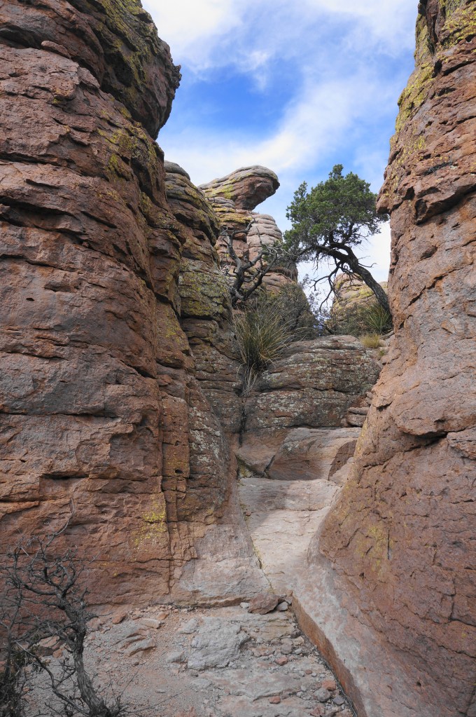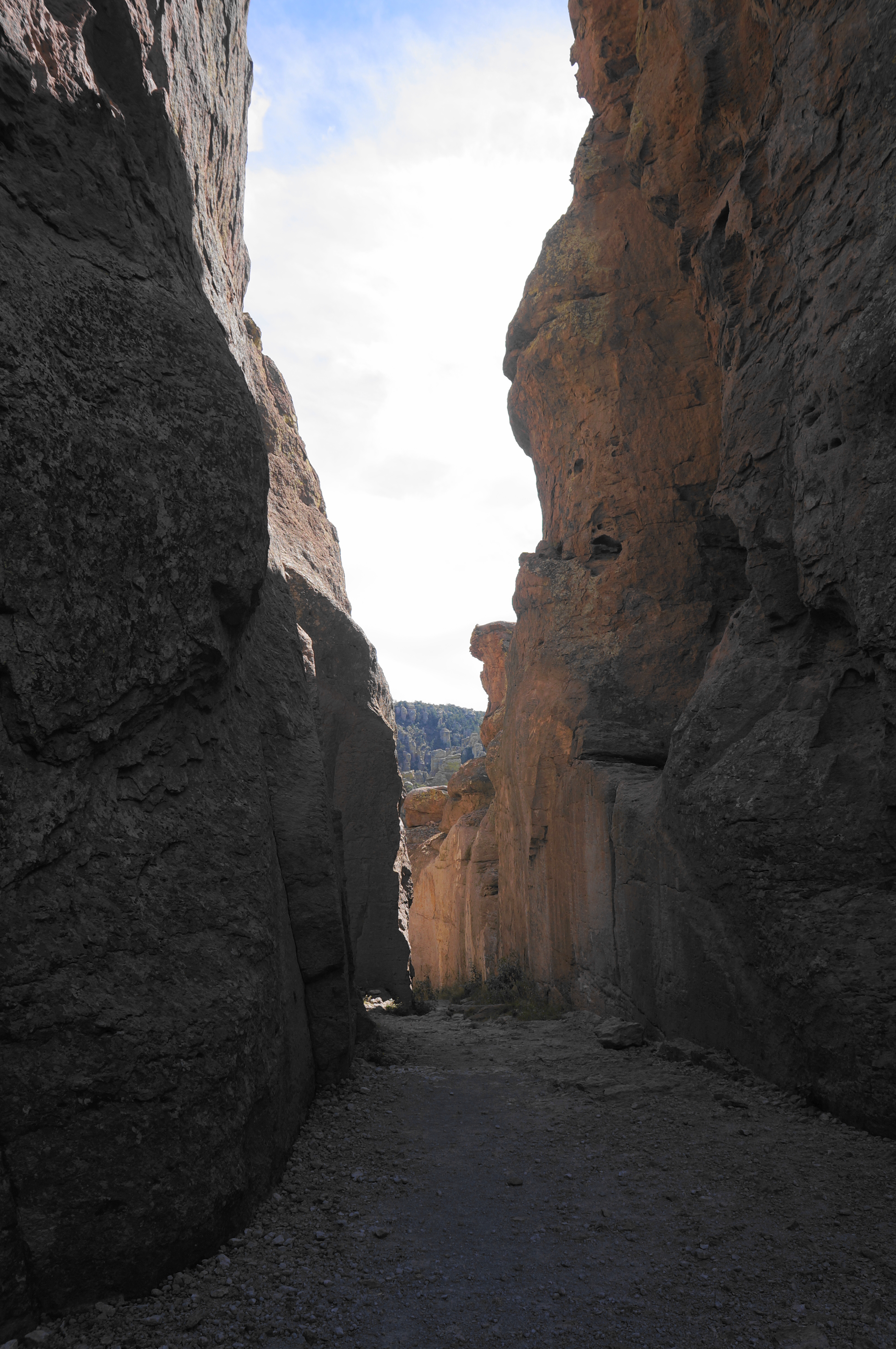 Climb steadily for nearly a mile before the path briefly levels and crosses to the east side of the drainage through Sarah Deming Canyon, initiating the final ½-mile ascent out of the canyon and into the Heart of Rocks area.