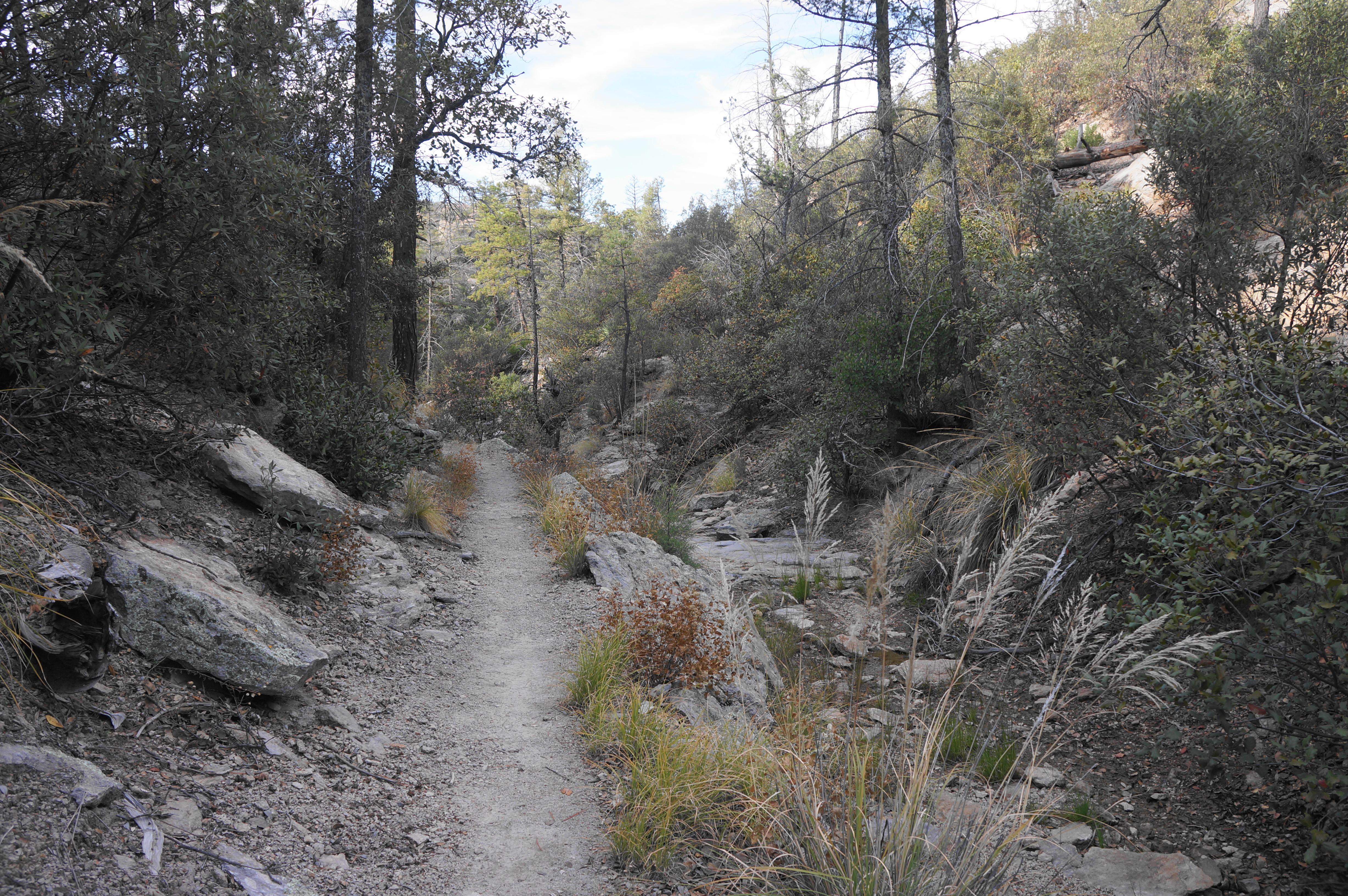 Like the other forks, Sarah Deming Canyon too is lined with rock formations, although the denser woodland cover blocks much of it from view for at least the first half of the climb. Edge eastward, then south, as the trail stays well above the canyon floor, climbing through a mix of deciduous and coniferous tree cover.