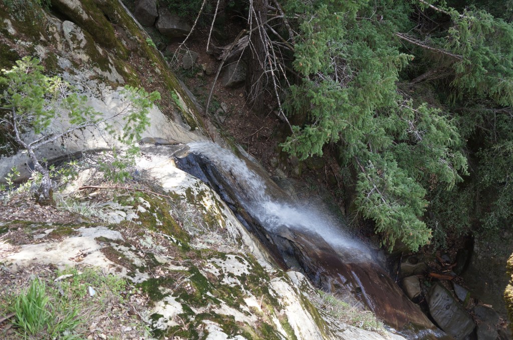 In spring, the creek flows at a pretty good clip, with minor cascades culminating in the much-anticipated Castle Rock Falls. At ½ mile, cross another bridge, then approach another fork: this is the start of the loop portion of the hike. Head left first to reach the falls, continuing on the Saratoga Gap Trail, which takes the low ground (while the right fork begins the Ridge Trail on higher ground).