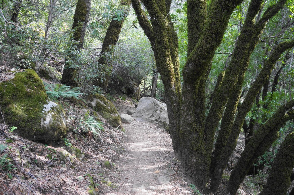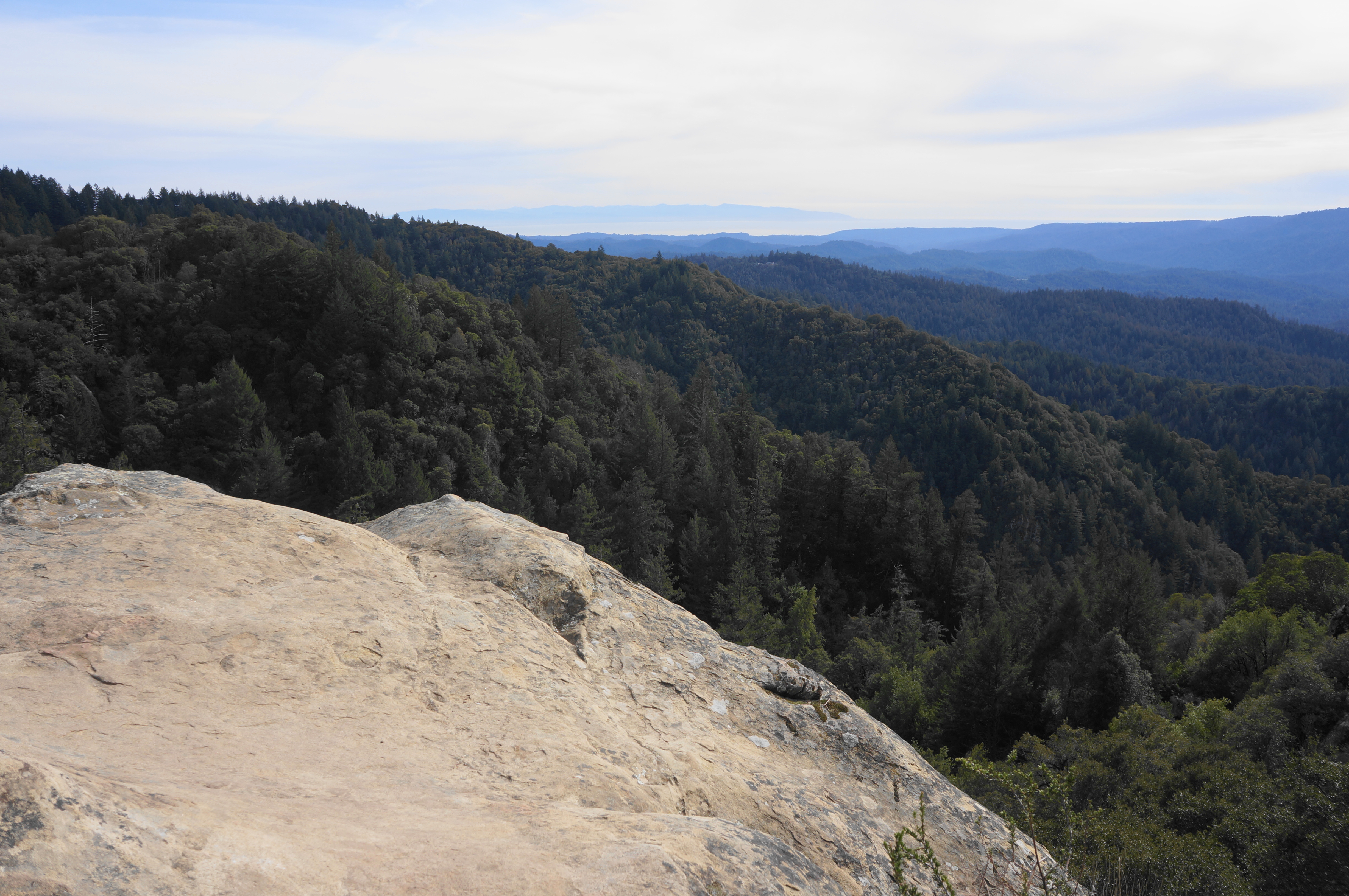 Castle Rock State Park spans more than 5,000 acres of mostly-wooded terrain in the upper San Lorenzo River watershed of the Santa Cruz Mountains, about a 20-minute drive from Saratoga, a suburb of San Jose, California. There are several trailheads, and many will start at the Main Entrance off Skyline Boulevard, but yours truly started from the Overflow Lot just south of the main parking area. On weekends, the latter might be the only option for latecomers; on weekdays, the lot is often closed, but there is (free) parking along the shoulder of Skyline Blvd (Route 35) (see map here).