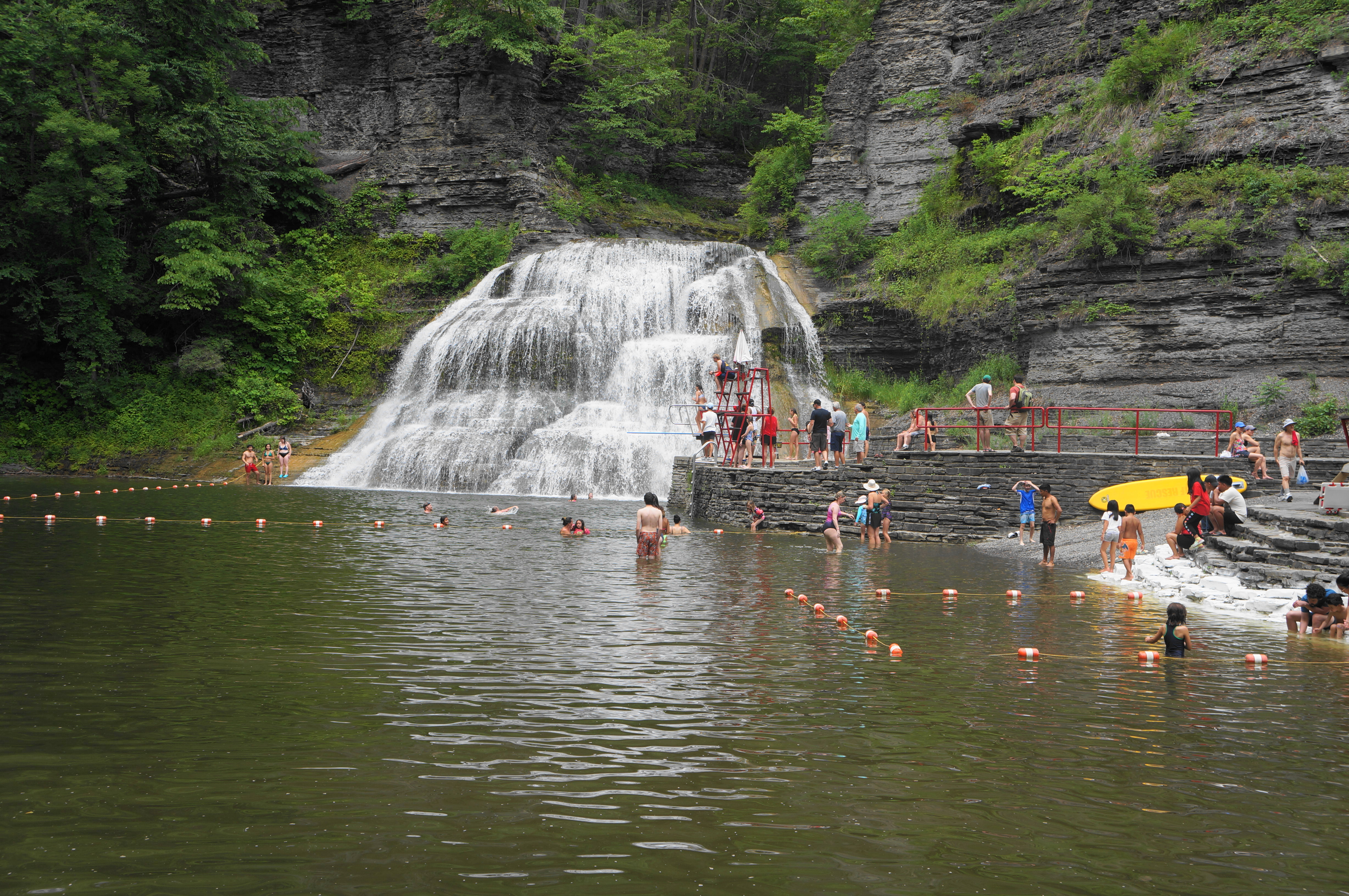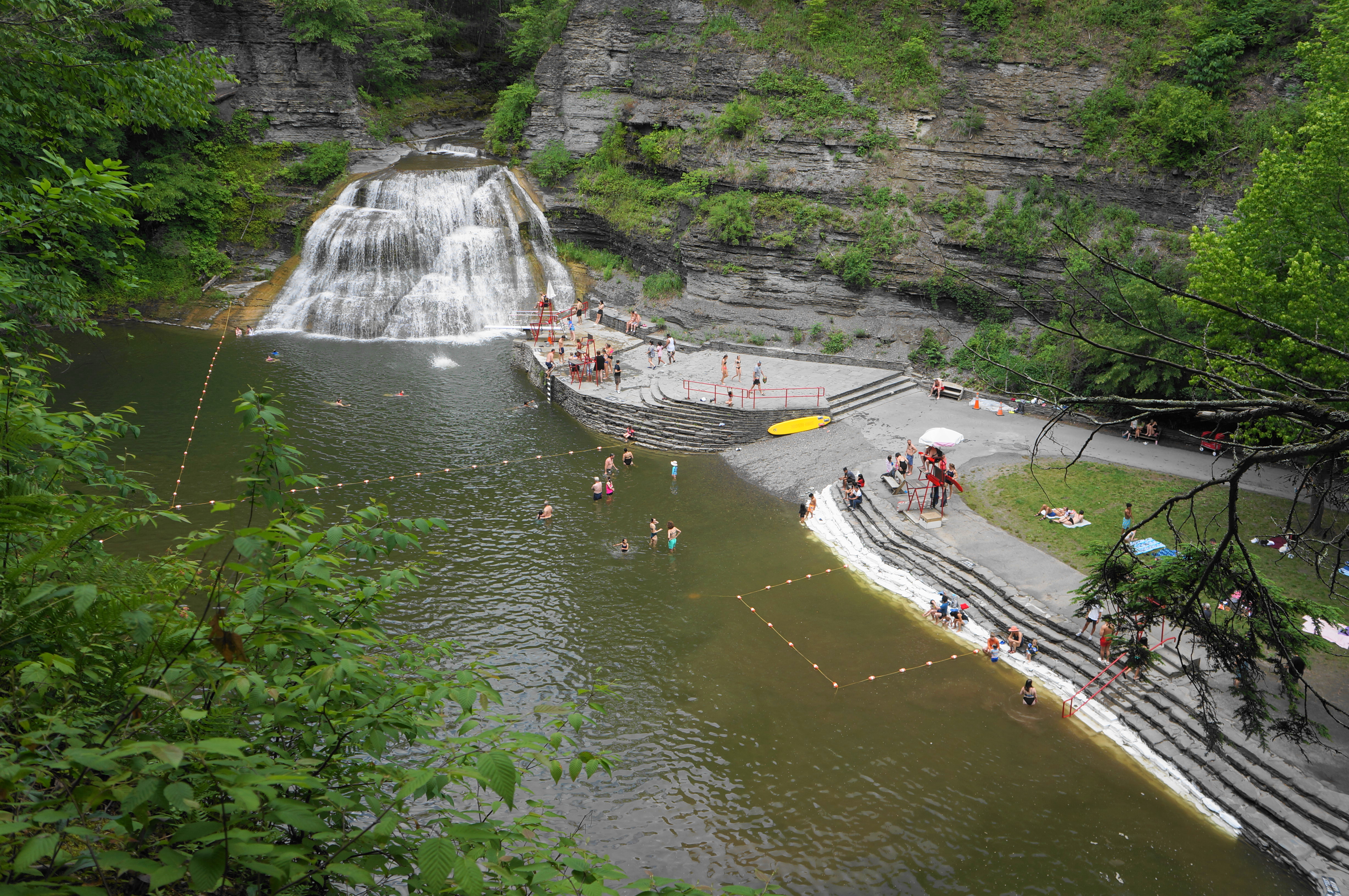I brought my son on that version a few years ago when he was 9. He had never been to Robert Treman before, so I secretly packed swimsuits. When he inevitably oohed and aahed at the waterfall swimming area near the end of the hike, I pulled them out as a surprise. I completely agree with your perspective that the swimming area spoils the natural beauty of the Lower Falls and had never swum there before. However, I knew it would appeal to a kid, and found it to be an extremely refreshing place to swim, 7 miles into an 8 miles hike. Nice cold water. Bring a suit next time!