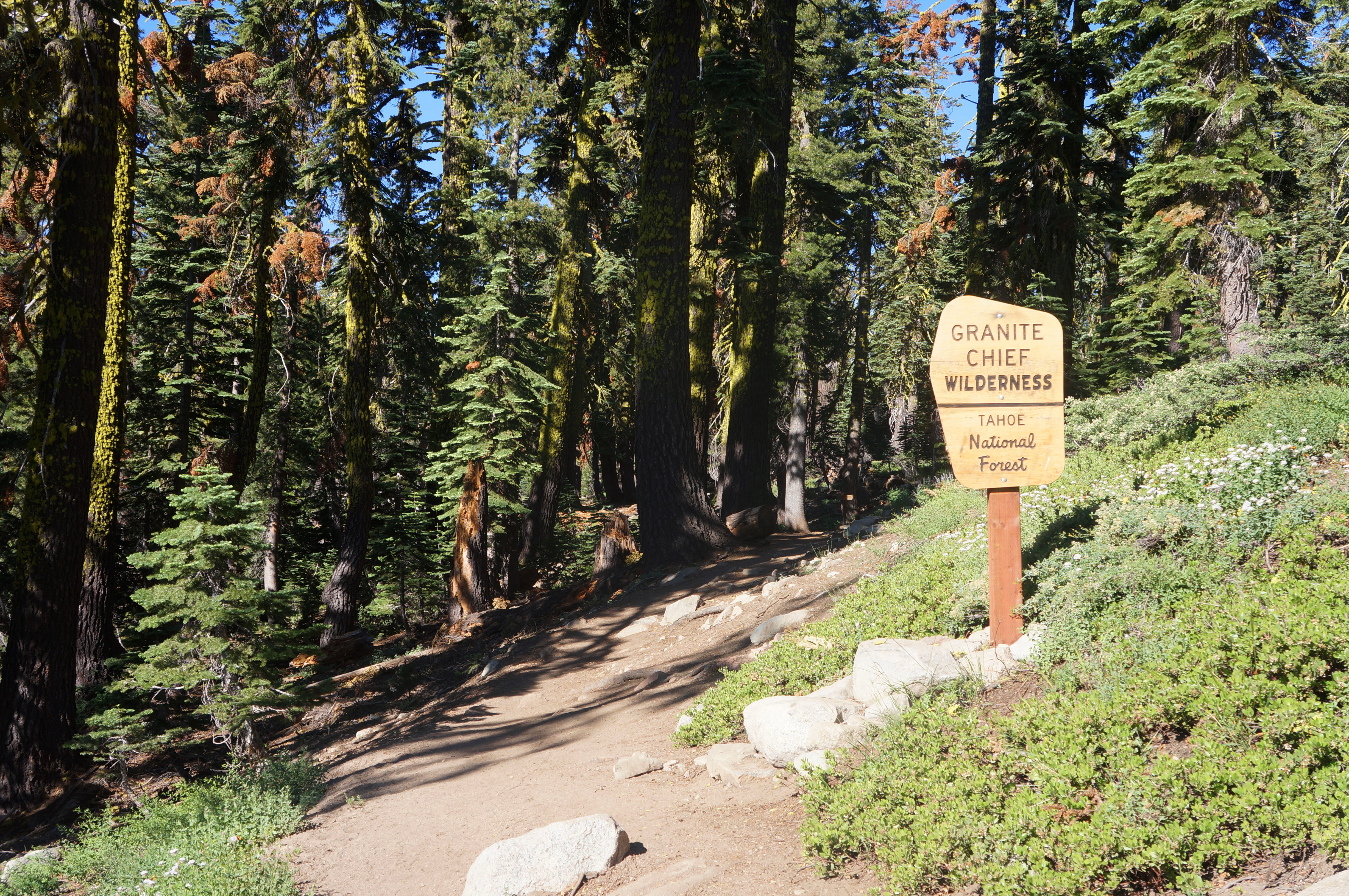 At 1.6 miles, enter the 26,000-acre Granite Chief Wilderness, then enjoy the refreshing cool of the dense forest of red firs. The mostly level path wanders gently into the Five Lakes Basin. By now you have crossed a local divide; the lakes actually feed into a creek that heads west, draining into Hell Hole Reservoir and the Rubicon River—not east through Alpine Meadows.