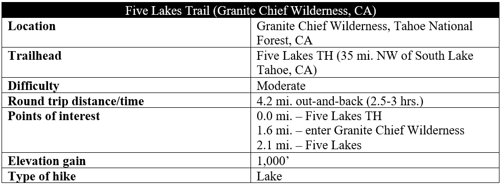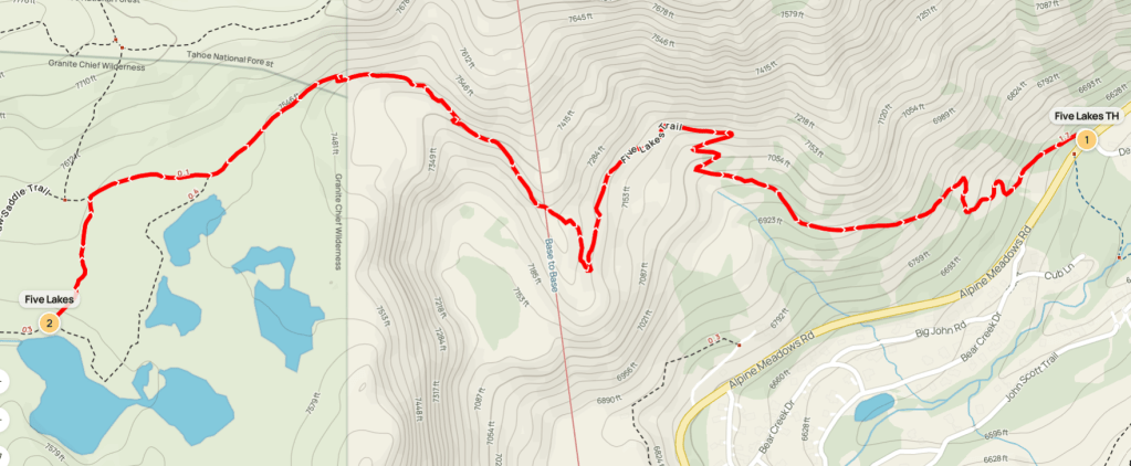 Thanks Kelly – I am sure the section beyond Five Lakes is rugged and difficult to follow as you suggest, although the initial route to Five Lakes – without snow cover of course – appears to be one of the best-established paths in the Tahoe area.