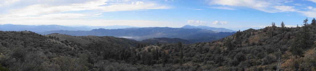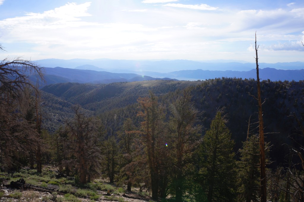 From here, continue as the trail bears south, high above a drainage feeding into South Fork Birch Creek. The bristlecones continue to dazzle on the right, although they are fewer in number, as this slope gets more sun and less persistent snow.