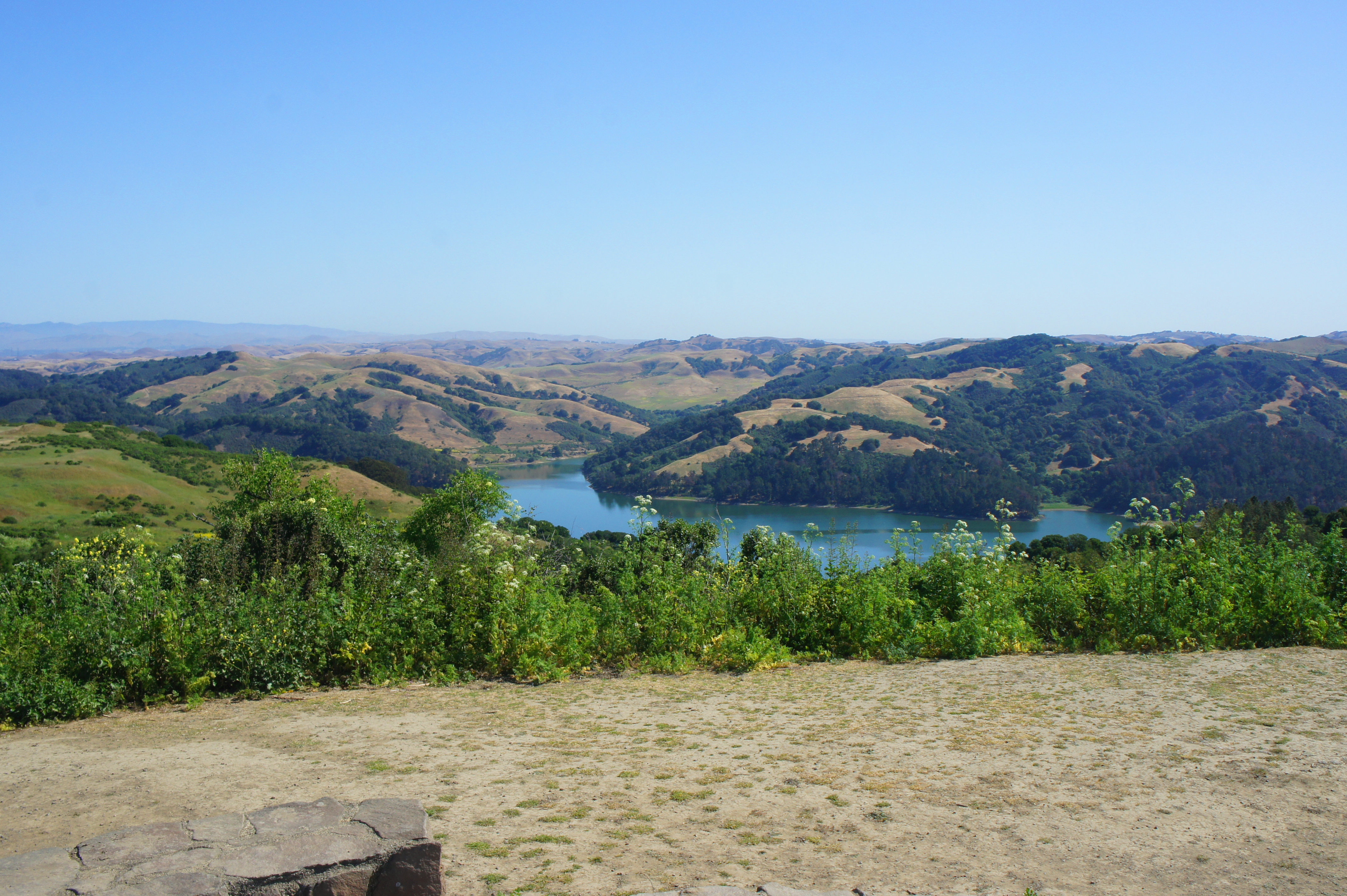 Charles Lee Tilden Regional Park, named for a founding board member of the East Bay Regional Park District, is perhaps the most famous park in the Berkeley Hills and certainly one of the most popular. Recreation opportunities abound, with swimming, golf, biking, horseback riding, camping, picnicking, event spaces, a petting zoo, and even a kid-friendly steam train all available in the 2,079-acre tract. The hiking network is also impressive, with nearly 40 miles of trails—mostly fire roads but also some singletrack—straddling ecologically-diverse terrain. Here you’ll find plenty of natural landscapes resembling what the terrain looked like before it experienced encroaching development: bay/oak woodlands, seasonal streams, windswept hills, and craggy rock outcrops. But the non-native introductions also admittedly make for interesting walking, including stands of Monterey pine and blue gum eucalyptus and recovered pastures. The high ridgeline affords views to San Francisco Bay, Carquinez Strait, and San Pablo and Briones Reservoirs, while Wildcat Canyon harbors hidden (seasonal) cascades, magnificent bay stands, and two small (dammed) lakes. There is also a small botanical garden that highlights native flora from across the state of California.