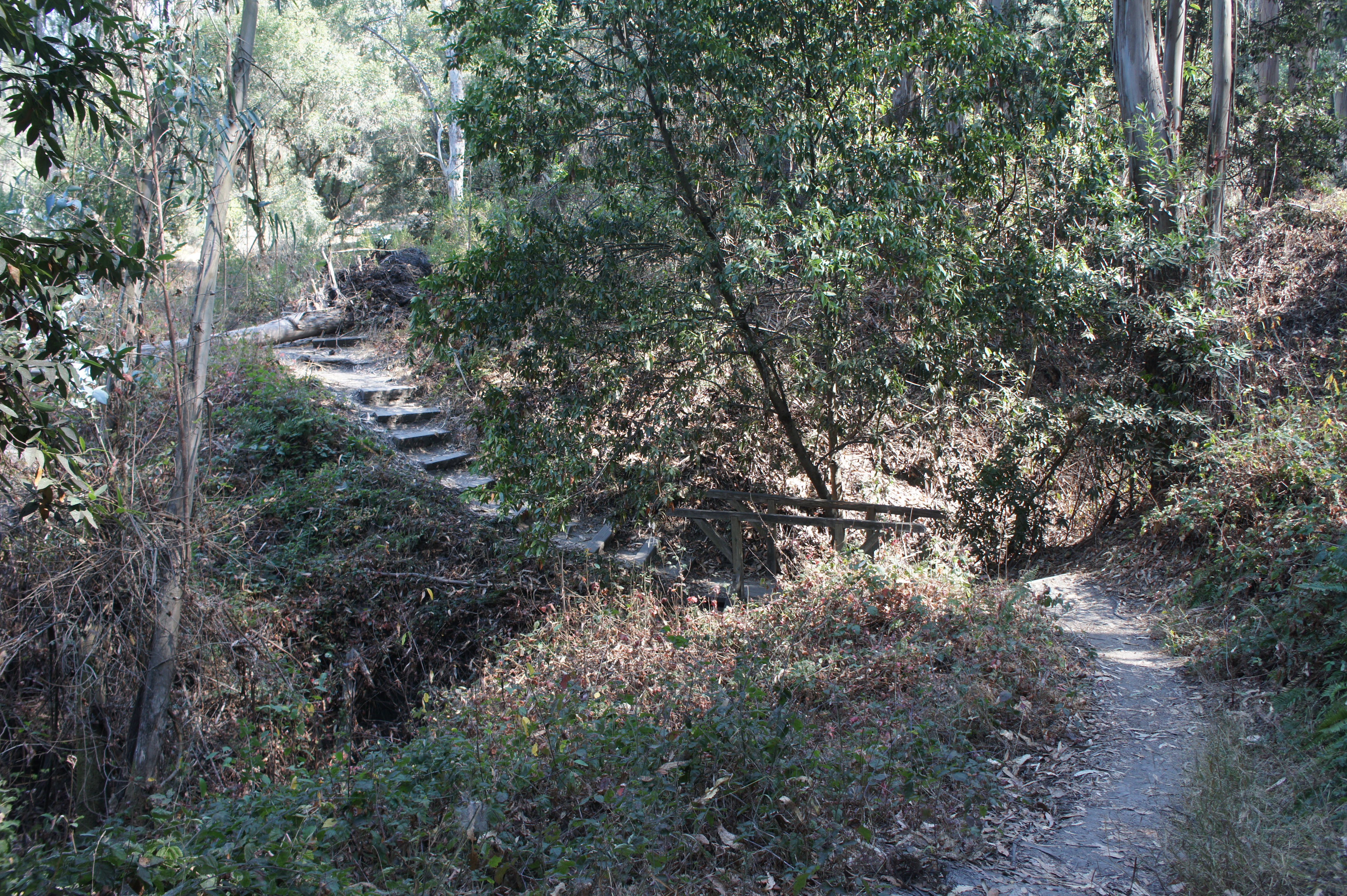 The focus of this post is on the northern part of the park, which is delineated as the 740-acre Tilden Nature Area. This area differs from other parts of Tilden owing to its stricter ecological protection rules: no dogs are permitted, and bicycles and equestrians are restricted to a handful of routes. The result is, at least in the upper reaches away from the main parking area, a more wild and rugged experience, with some challenging and narrow hiking routes and interesting diversity of landscapes and ecosystems, from scrubby chapparal to eucalyptus forest to riparian swamp.
