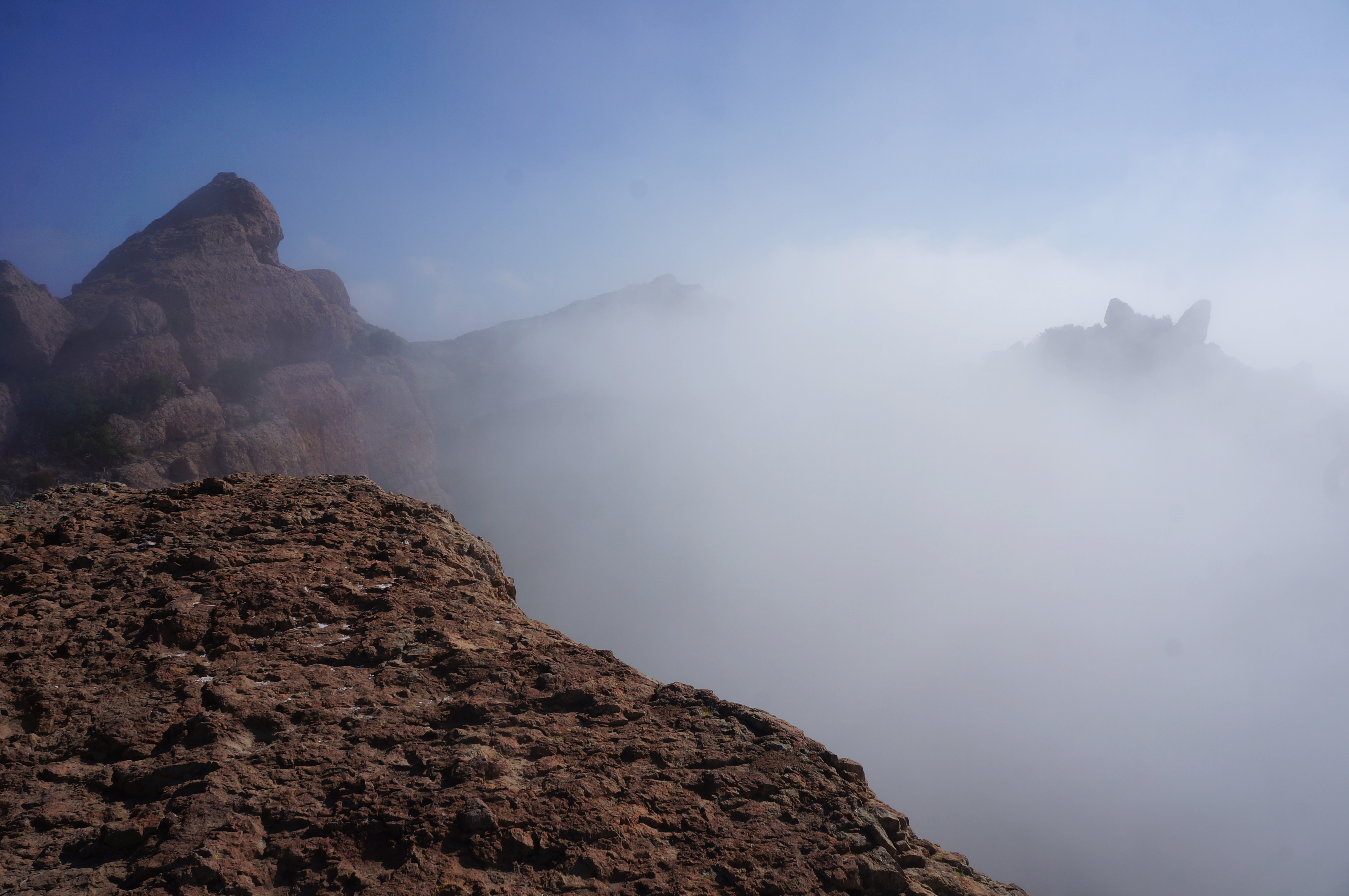 The diversion to Tri Peaks brings one into the heart of Boney Mountain, which comprises a series of high knobs, boulder outcrops, and snaking ridges. The views are not as extraordinary as those of Sandstone Peak, but—if one still has the energy—it is worth the one-mile detour.