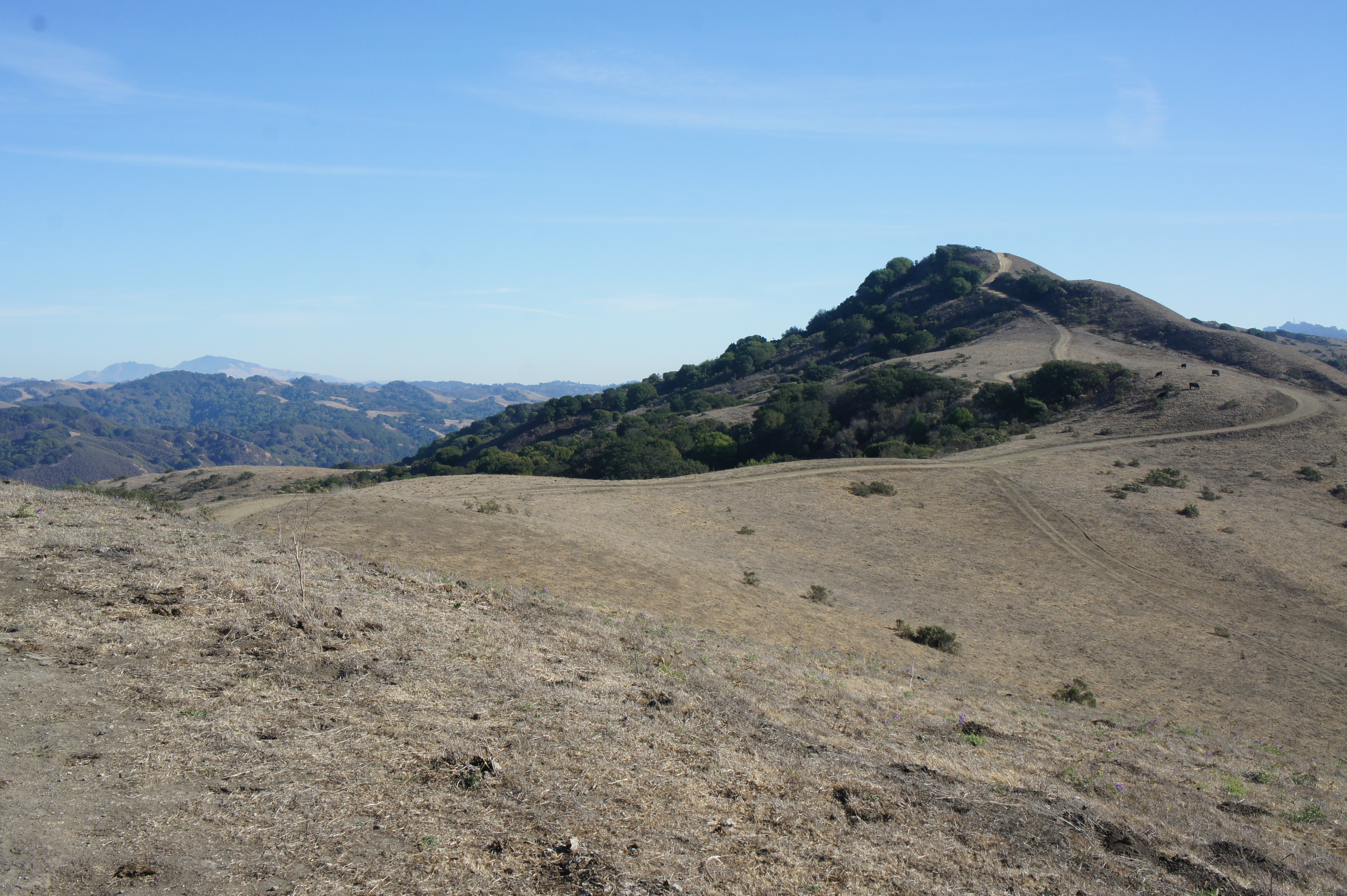 Instead of ending at an underwhelming side trail, try instead this longer and more scenic circuit, which drops to popular cattle watering hole and climbs to sweeping views along San Pablo Ridge. After the initial ¾-mile climb on the Clark-Boas Trail, stay straight at the 4-way junction, descending gradually along the Old Well Trail to a brushy ravine. After crossing the usually dry streambed, bear left up to the watering hole and ascend the cattle trail heading sharply up to a saddle on San Pablo Ridge Trail. Bear left on the wide path, which briefly ascends before dropping sharply to a junction with the Green Ridge and then Clark-Boas Trails. Return down the latter back to the trailhead.