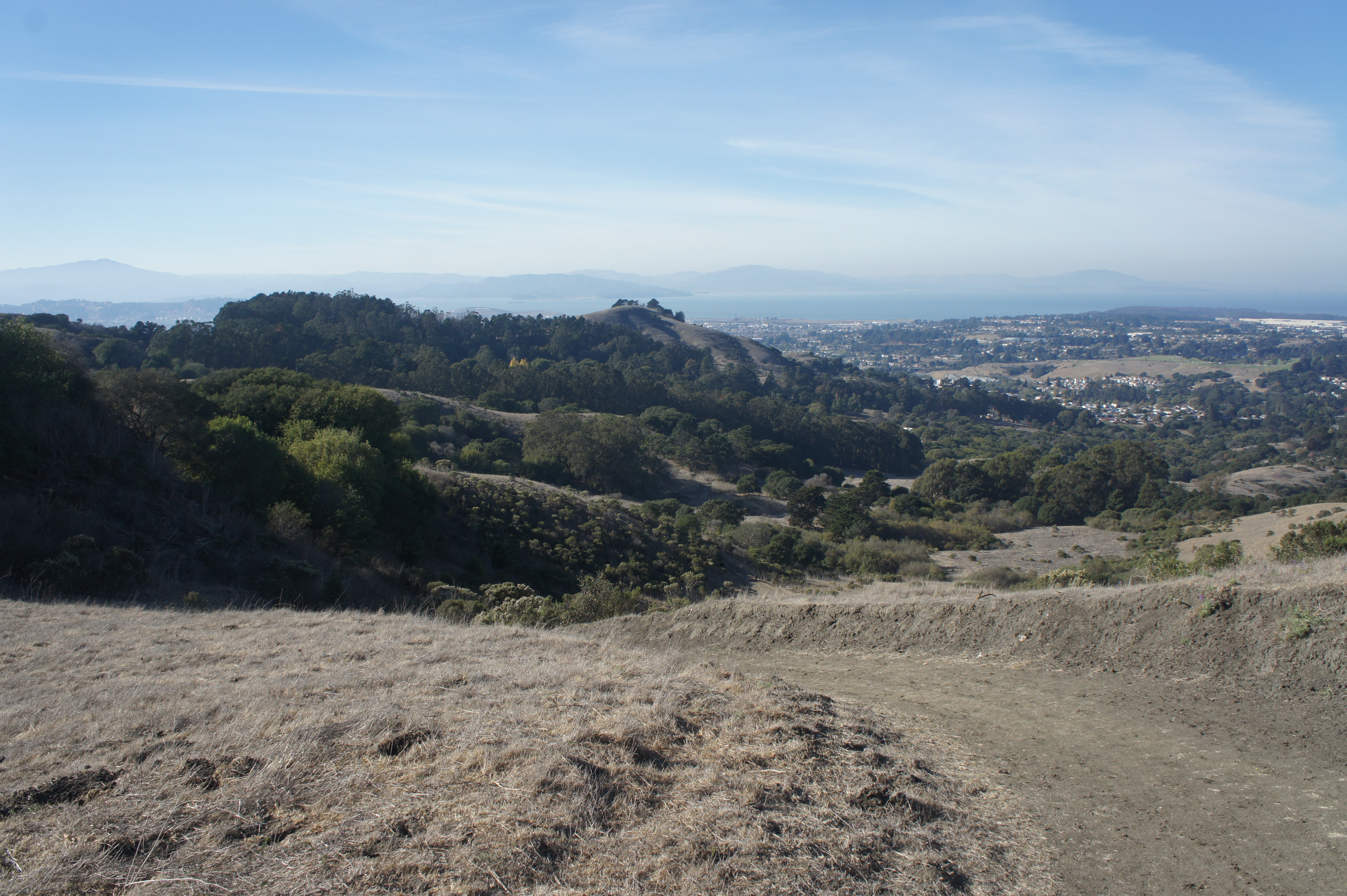 Longer hikes can be found in the broader Wildcat Canyon Regional Park. The main geographic feature is the bulky San Pablo Ridge, which towers several hundred feet above the Wildcat Creek drainage and extends southward into Tilden. The ridgetop has some of the area’s best panoramic views, especially west to the San Francisco Bay and Marin and north and east across the Carquinez Strait. Expect little shade on the hilltops, but a dense mix of bay laurel, live oak, and even deciduous varieties in riparian areas along Wildcat Creek. The descent from Rifle Ridge Road is particularly pleasant as it descends a woody slope.