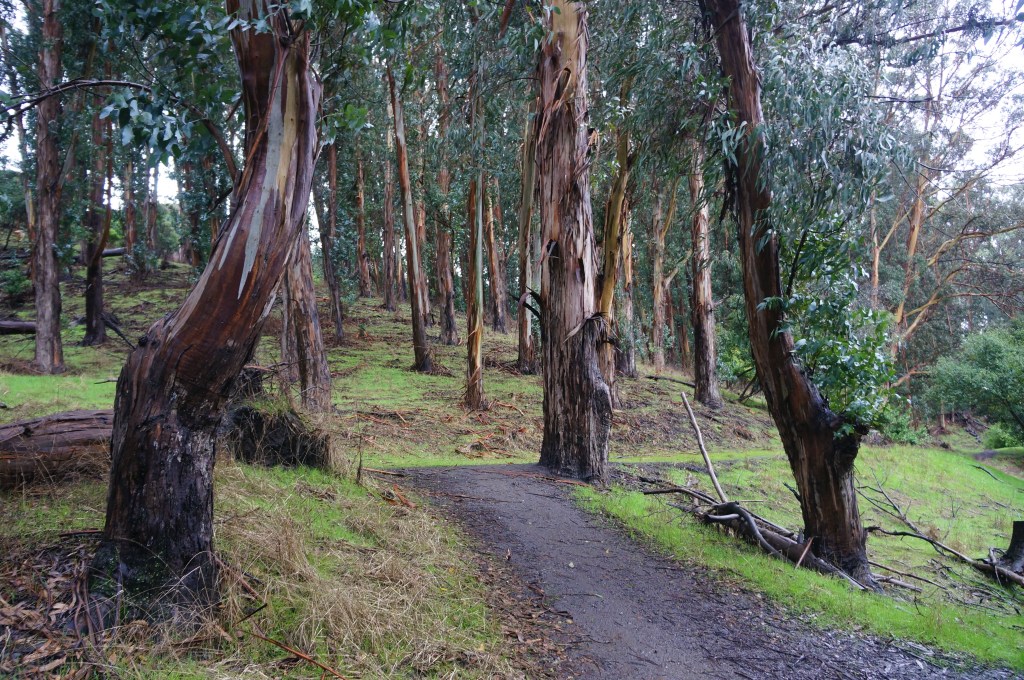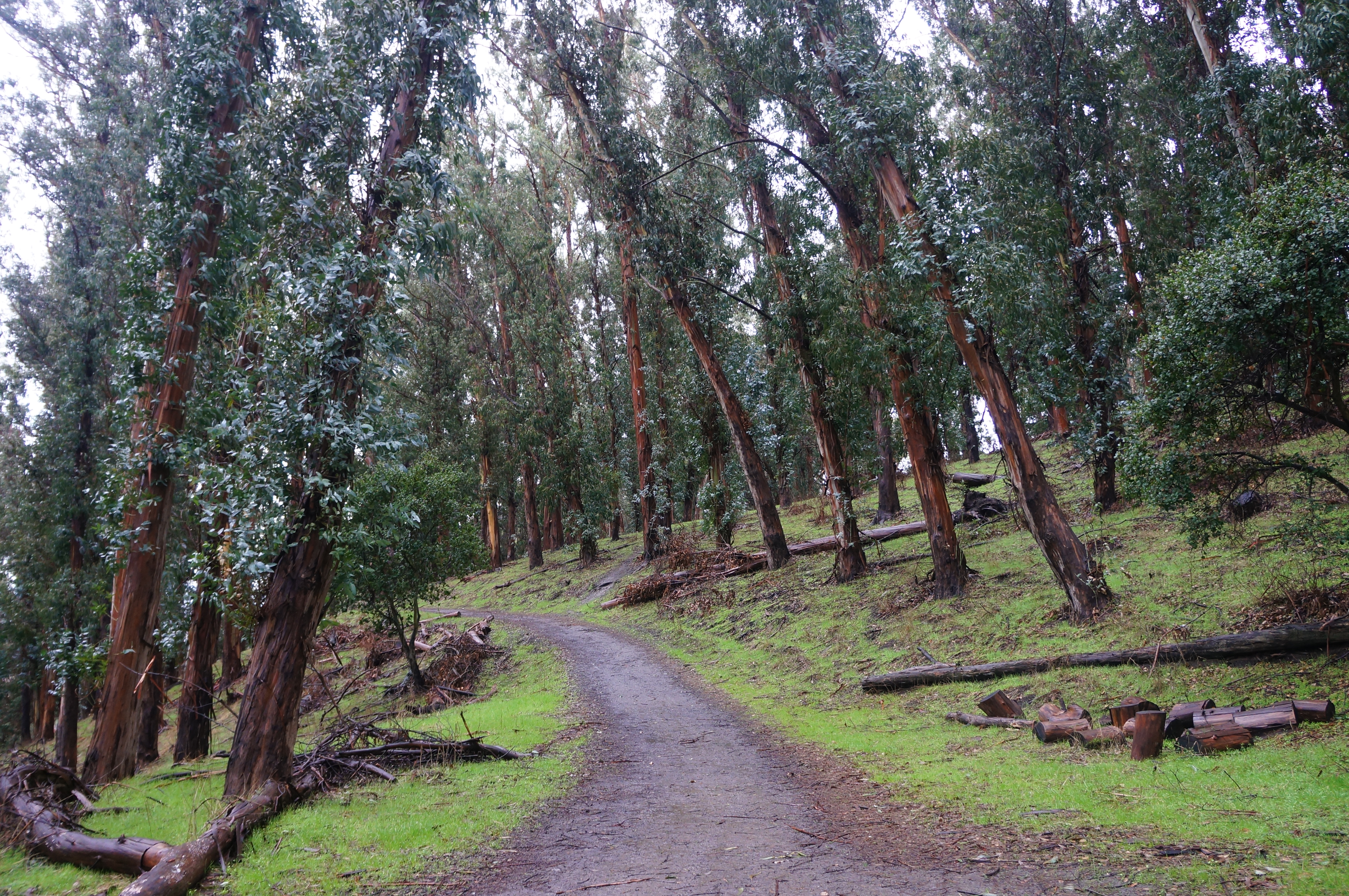 The most memorable part of Alvarado Park is the mature eucalyptus grove, which can be seen on this slightly-longer circuit beginning and ending at Alvarado Staging Area. Follow the first 2/10 mile of the hike described above, then continue straight through the picnic areas, following signs for “Camp Bay,” which is a modest picnic area set in a bowl below North Arlington Boulevard. Bear right from Camp Bay and enter the eucalyptus grove, staying straight at subsequent junctions until returning to the initial split near the trailhead. From here it is a short walk back to the parking area.