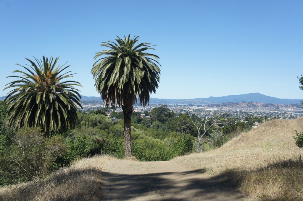 This longer circuit combines sweeping views of San Francisco Bay with biodiversity that ranges from scrubby chaparral to pines, eucalyptus, and even a handful of palm trees. From the staging area, continue to the end of the road and onto the wide Wildcat Creek Trail, then bear left on the Bonita Trail. Climb 200 feet in elevation to the Bonita Gate, then bear right on the Monte Cresta Trail, which begins as a paved road. Bear right as the trail continues as a gravel track at ¾ mile, then peek through a brief gap on the left with eastward views of Martinez and the Carquinez Strait. From here, the untarnished views of the Bay to the west improve with each step, and the Monte Cresta Trail skirts a forest of splendid pines and eucalyptus. After a steep ascent, the hike reaches around 800 feet in elevation then drops to a fork at 1.5 miles. Bear right on the Belgum Trail, following it downhill—past the palm trees and the Belgum Sanitarium—to return to the Wildcat Creek Trail. Head right, then left at the next junction, to return to the staging area.
