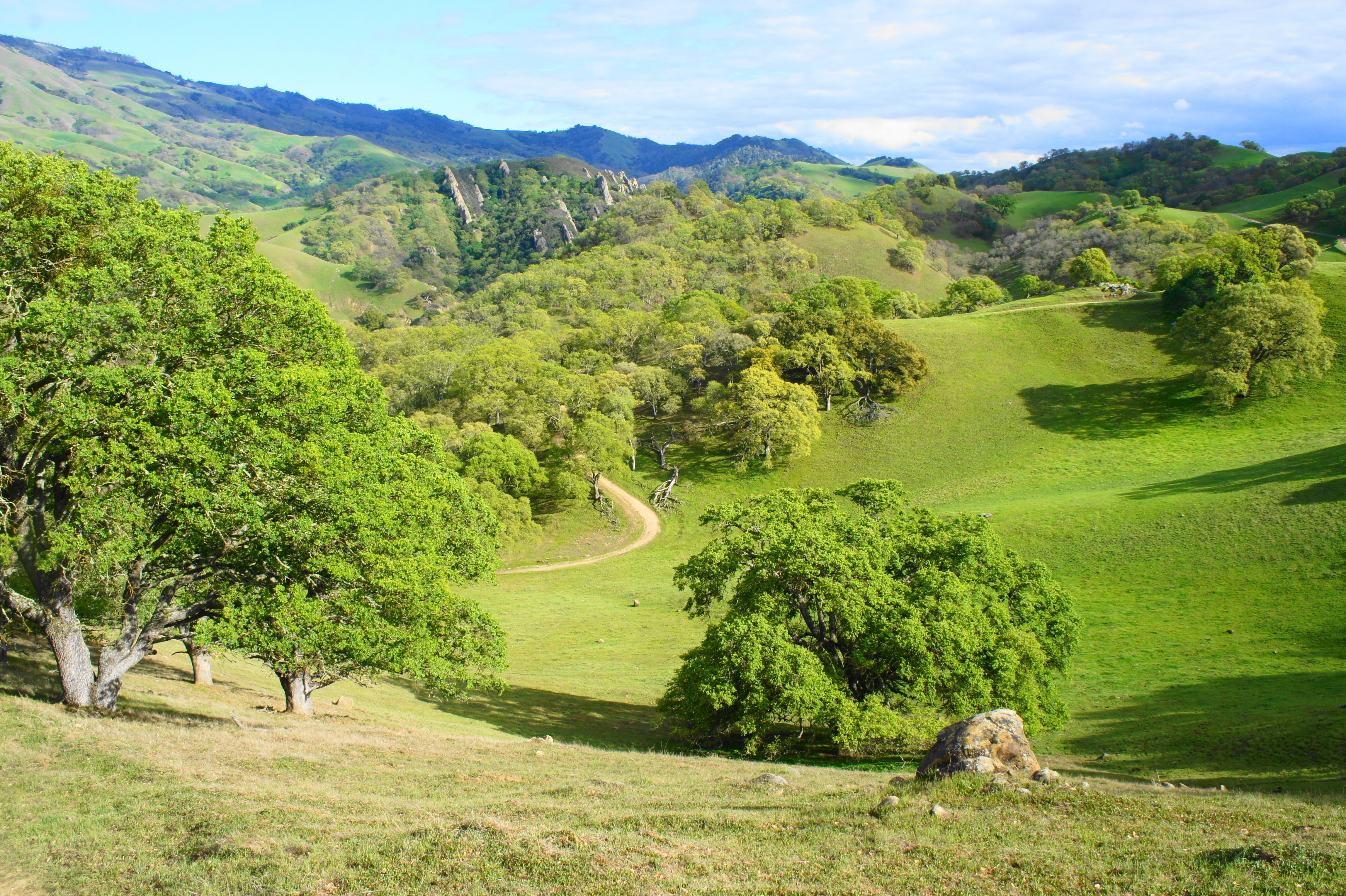 Covering a portion of a scenic hogback fanning out westward from Mount Diablo, Diablo Foothills Regional Park is—at 1,060 feet—relatively small and has only one peak that exceeds 1,000 feet. Yet, at least in winter and spring, the area is exceptionally picturesque. The terrific trail network, set in the shadow of the mighty mountain, traverses rounded hills, windswept grasslands, shady valleys, and craggy ridgetops. The park also subsumes the smaller Castle Rock Regional Recreation Area, which contains picnic areas, sports fields, and a small swimming pool – a popular spot for weekenders. The main geographic features are charming Pine Canyon (fed by Pine Creek, which maintains a decent flow through early summer) and intimidating Shell Ridge, a camelback composed of rock around 12 million years old.