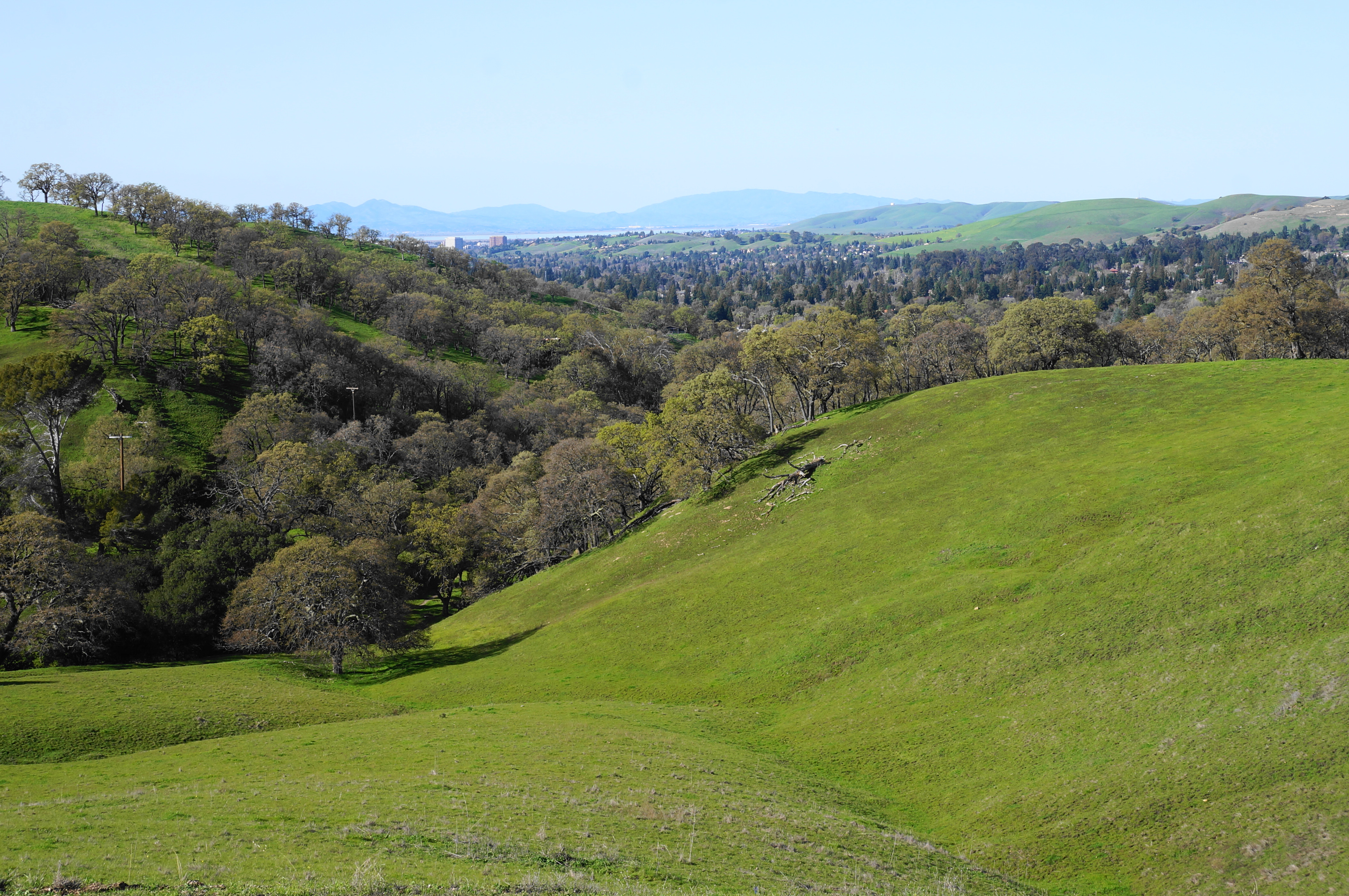 Entering the park from the west, this alternative route climbs Shell Ridge from Old Borges Ranch, traversing several ups-and-downs over the course of a scenic 2.5-mile trek. From the parking at Old Borges Ranch in the adjacent Shell Ridge Open Space, head north on the grassy Borges Ranch Trail, bearing right to descend to Bob Pond and Hanna Grove Picnic Area. Cross the street, finding a thin trace—appearing as little more than a cattle track—which parallels the road and enters Diablo Foothills Regional Park. Eventually the narrow track widens and climbs away from the road, ascending to a junction at 4/10 mile; stay right, ascending further to Shell Ridge. Bear right on the Shell Ridge Trail, rising to heights overlooking Pine Canyon. Then bear left at the next junction, dropping and rising again, before taking the Shell Ridge Loop Trail left down into a secluded gully. Stay left, then take the next two rights, following the wide, old ranching track to Portuguese Gap. Pass through the gate, reentering Shell Ridge Open Space, skirt Buckeye Hill, and take a right at the final junction, descending to the trailhead.