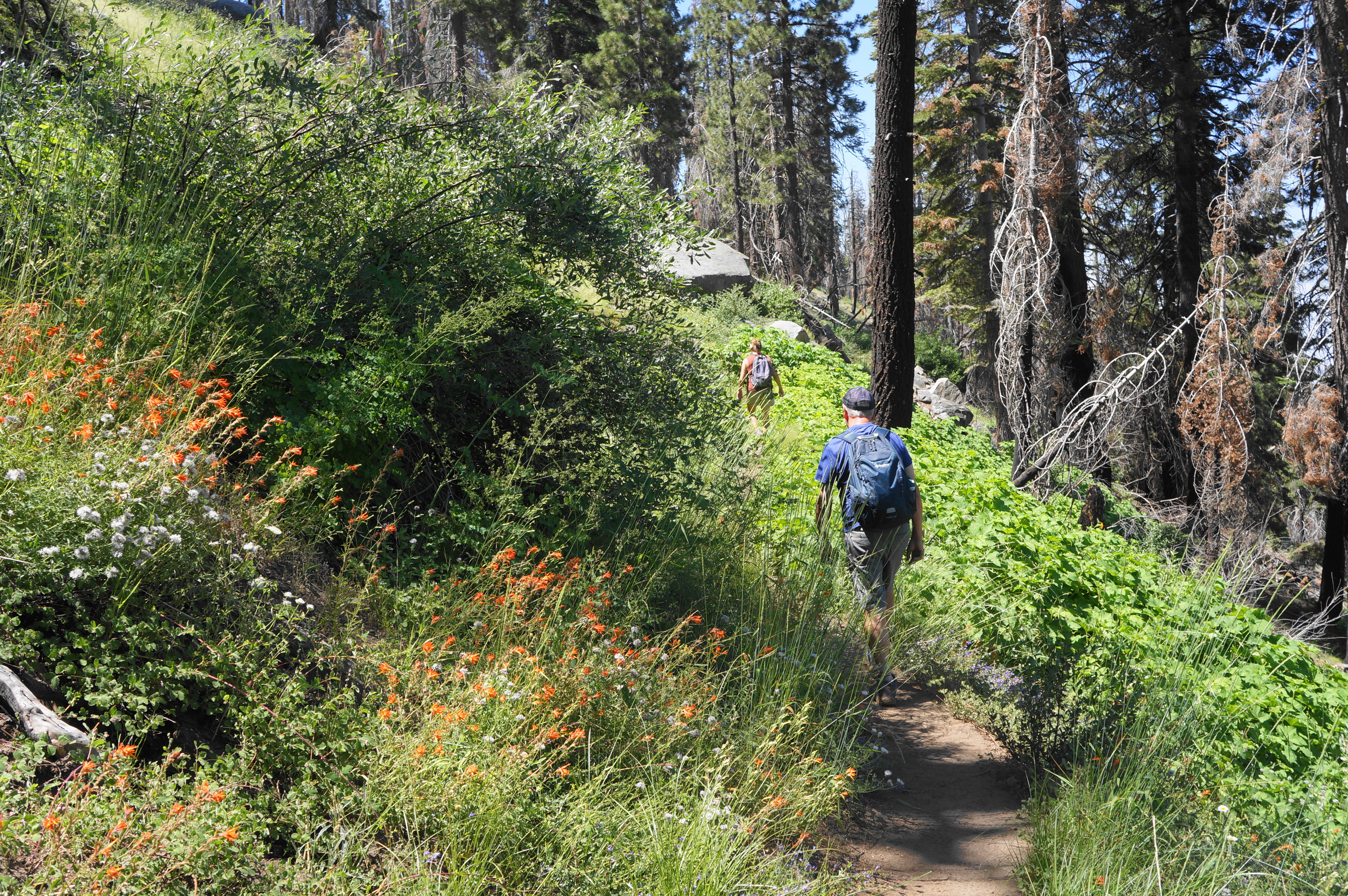 When ready, return the way you came, carefully descending the dome and finding the trail again, which routes northward, then south, dropping back to Little Baldy Saddle. The total distance is around 3.4 miles, making for a half-day hike that can easily be combined with another endeavor (such as nearby Tokopah Falls) for a satisfying day in Sequoia National Park.