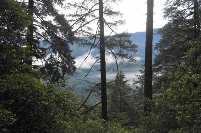 The Western and Eastern Routes meet at this fork, with a short spur heading right that leads to the top of the mountain. Take this detour as it turns into a short loop of its own, rounding to a trifling meadow and summit of Humbug Mountain (1,761’). The ever-so-modest clearing is enough to afford some far-reaching views southward along the southern Oregon coast. There are several wooden benches at the site.