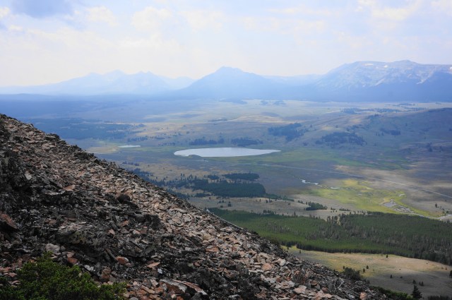 The uphill ceases suddenly at the first of Bunsen Peak’s three summits (all around the same height), where there is a small building, trail register, and communications tower. The best views from this spot are south and west, with Gardner’s Hole unfolding below, one of the best vistas in the Yellowstone caldera. Hikers can also see Sepulcher Mountain and Electric Peak again to the north, but eastward views are partly obstructed.