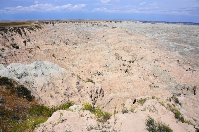 The South Unit of South Dakota’s Badlands National Park is far less visited than its northern counterpart but boasts hundreds of thousands of acres of grassy valleys and eroded sedimentary landscapes. Much less developed, options for visiting the South Unit (a.k.a. Stronghold Unit) are relatively limited. Most content themselves with driving around its perimeter and stopping at the White River Visitor Center, situated in the Pine Ridge Indian Reservation. The Red Shirt Table Overlook on the west side offers a look down at the chalky white-and-pink badlands. And it is possible to hike to the base—and possibly the top—of Cedar Butte from a spot near the visitor center. Yours truly did the former but not the latter, as a nasty thunderstorm was rolling in. The short gallery below offers a few photos snapped while circling the South Unit en route from the Black Hills to the park’s northern reaches.