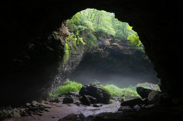 The fossil-bearing stone gives way shortly thereafter to the first of the 10 caves: Wide Mouth Cave. Take a short spur left, rising up a set of stairs, to the mouth, which, is, well, I suppose wider than many of the others in the park. Entering still requires most visitors to crouch significantly, though the ceiling rises a bit as spelunkers enter three successive rooms. The entire cave is thought to be about 100 feet long, making it one of the park’s most extensive.