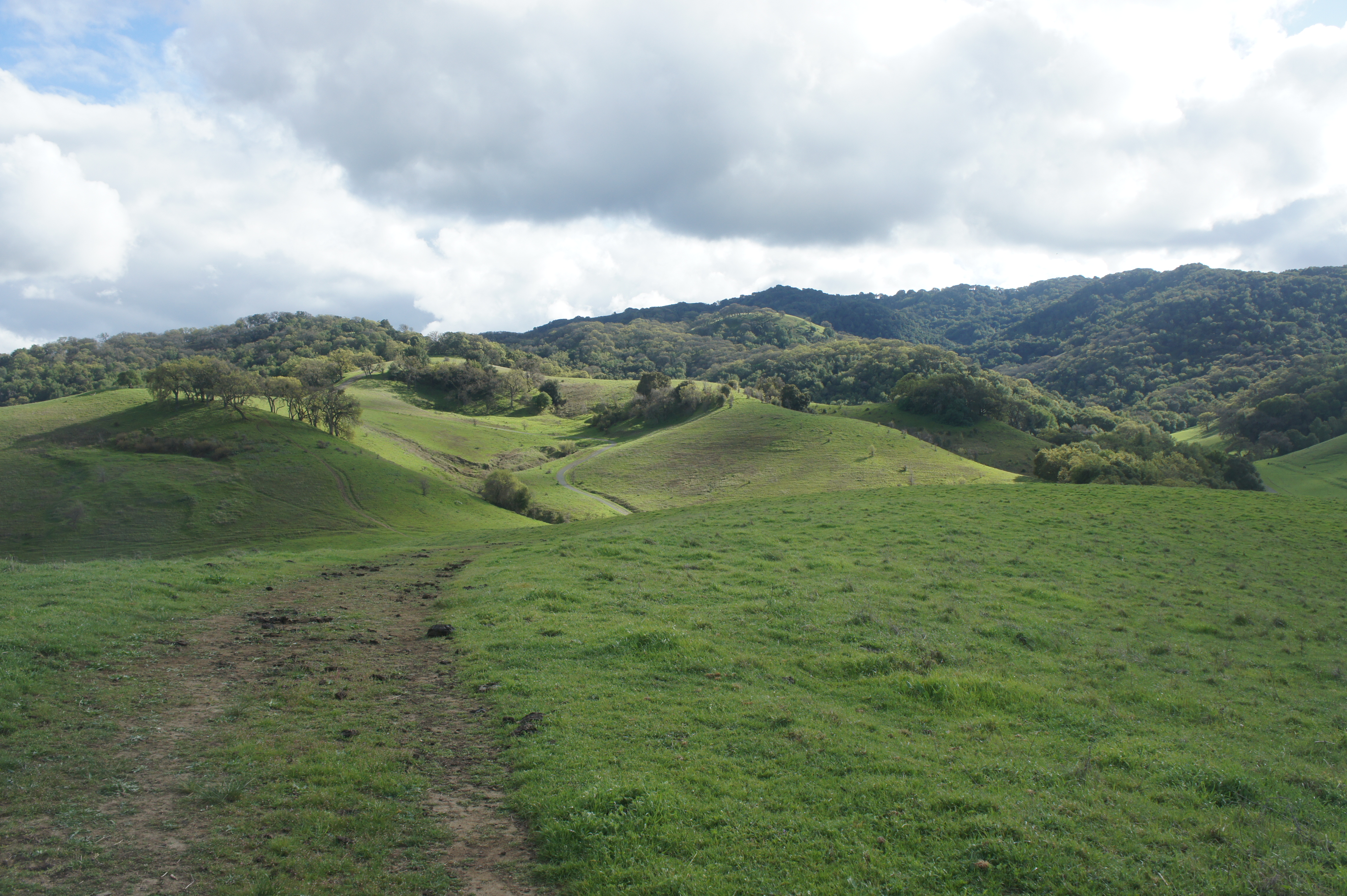 The Hidden Pond Trail is an improvement in terms of scenery and exits the park to the east before ending at a ritzy neighborhood in Reliez Valley. The namesake pond is elusive, but the trail does pass a set of drainage ditches just after leaving the park. From the staging area, follow the Diablo View Trail uphill for ¼ mile, then bear left on the Hidden Pond Trail, which dips up and down before leaving Briones at ½ mile. Continue on the singletrack, staying left at the fork and paralleling the drainage ditches, then climb steeply to crest a scenic hill. From here the trail descends again, down a set of switchbacks, then levels off as it cuts behind a gated subdivision and ends at the junction of Hidden Pond Road and Hidden Pond Lane. Return the way you came.