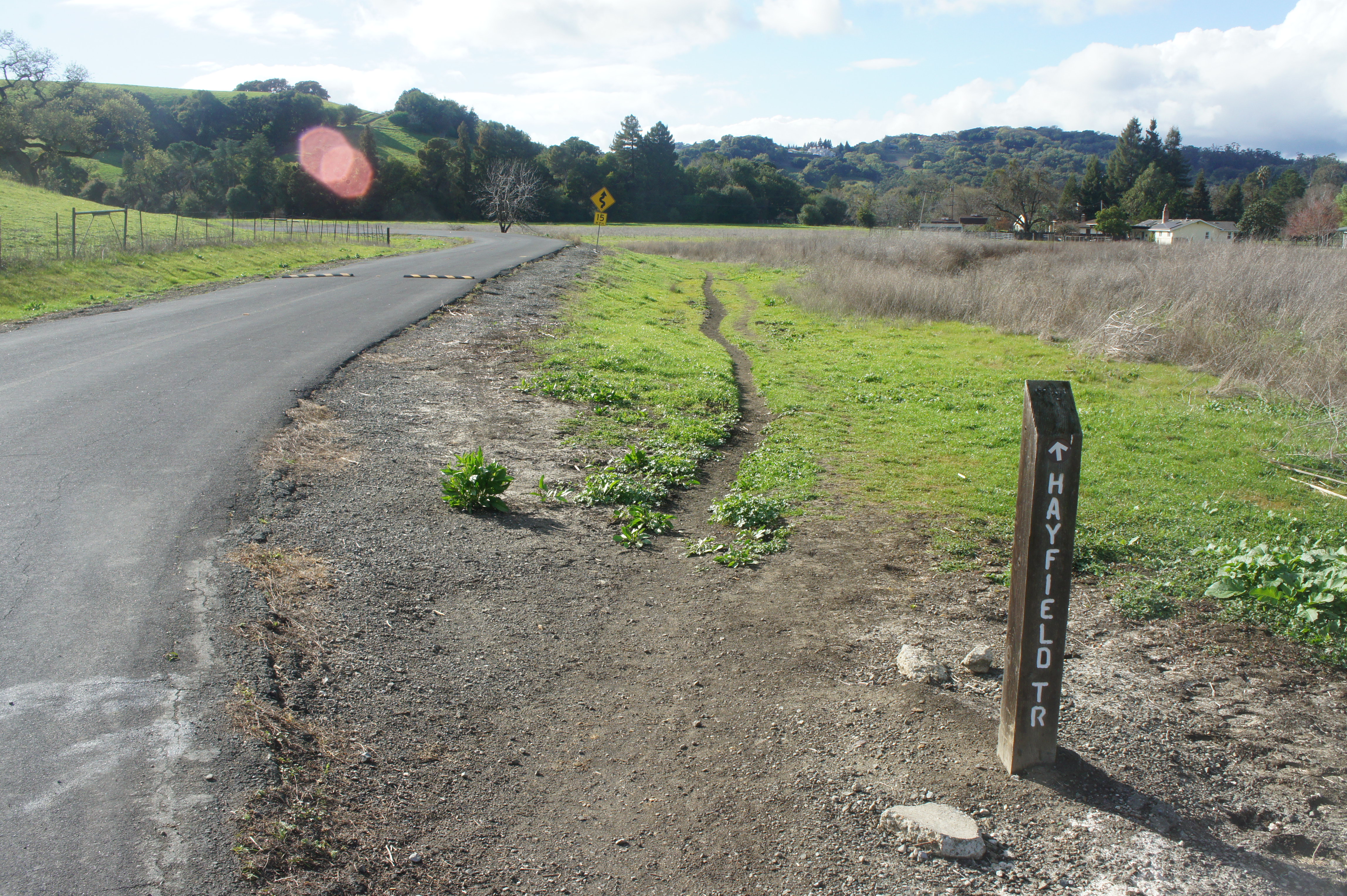 Compared to other hikes in Briones, the Hayfield Trail is rather unpleasant: the path is peppered with cow pies and horse droppings, and much of the path follows the road. Yet determined hikers can trace the 1.5-mile circuit starting from Alhambra Creek Staging Area. Begin by following the Tavan Trail eastward, then bear left as the Hayfield Trail ascends an open hillside and passes under a set of power lines. Follow the single-track path as it descends toward the park entrance, leveling with Brookwood Drive at ¾ mile then passing private horse stables on the right. Cross the road, then follow the dirt track back to the staging area, keeping the road on the left.