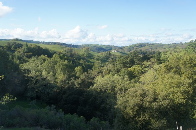 This post covers short jaunts and longer hauls starting from the Alhambra Creek Staging Area (map), situated in the northeast corner of Briones Regional Park. This is the easiest parking area to reach from Martinez and is popular with horseback riders. The stream valley here feels more cut off from the rest of the park, with all the hikes here staying below the Briones Crest. But there is a mix of woodier and hilltop options, with five relatively short walks described below.
