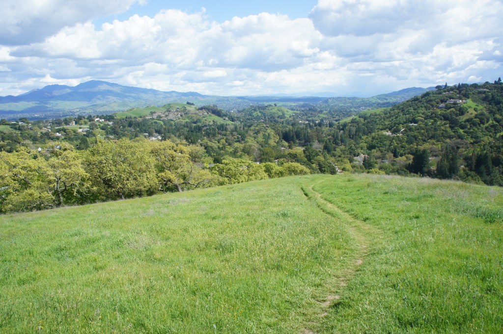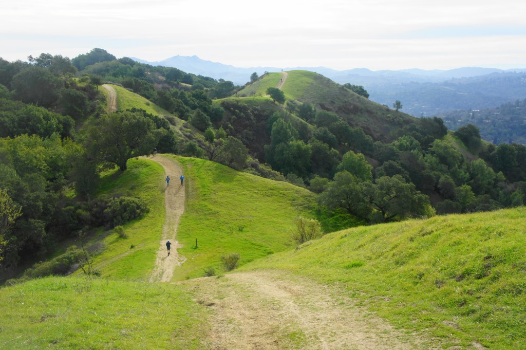 Though not an official staging area marked on the EBRPD Briones map, there is indeed a parking area and trailhead at the end of Springhill Road, situated off Pleasant Hill Road in northern Lafayette. An open field gives way to hillsides and access to exquisite Lafayette Ridge, one of the highlights of the park. The Sunrise Trail is also terrific, a nice complement to the shady Buckeye Ranch route. I describe three options below.