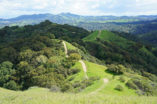 Covering 1,600 acres of former ranching territory in northern Contra Costa County, Briones Regional Park offers some of the most extensive hiking of all the many parks in the East Bay. Here a network of mostly fire roads weave in and out of woody valleys, climb to panoramic peaks, and offer ridgetop views of the Berkeley Hills, Carquinez Strait, Mount Diablo, and Ygnacio Valley. Access points are plentiful, including the Alhambra Creek (map), Bear Creek (map), Briones Road (map), Lafayette Ridge (map), Springhill Road (map), and Reliez Valley (map) Staging Areas. Each of these spots offers an entrée into the scintillating hills, which tend to be more pleasant during the winter and spring, when rains leave the hills lush with verdant green hues and wildflowers (and cool temperatures scare away the rattlesnakes!).
