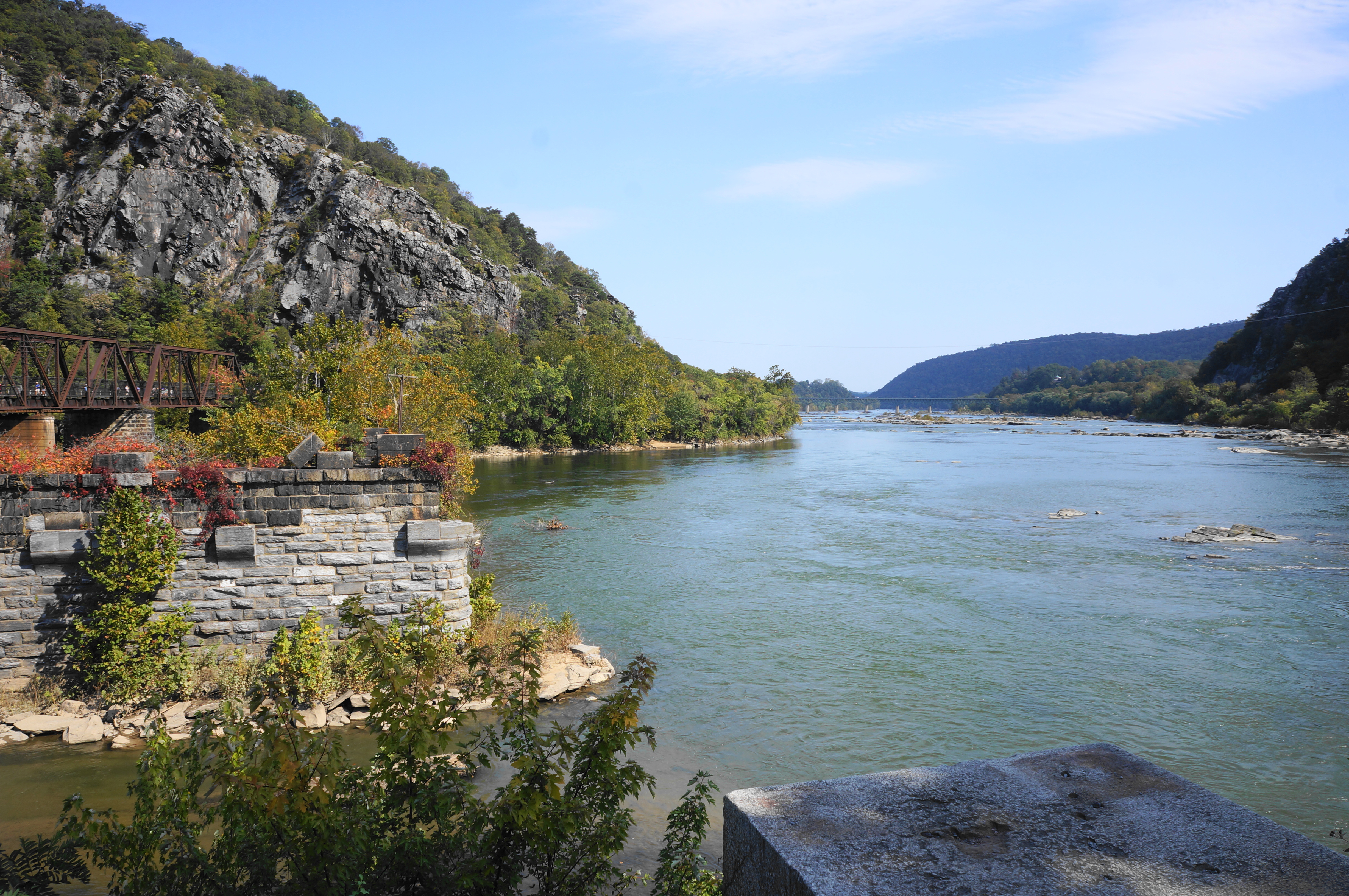 VA/WV Section 1 officially begins in Lower Town at the confluence of the Potomac and Shenandoah Rivers (a.k.a. “The Point”) in Harpers Ferry National Historical Park. Here one can look out on a mix of bridges, old and new, and the imposing cliffs of Maryland Heights, set across the Potomac in neighboring—you guessed it—Maryland.