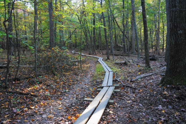 Now almost five miles from the start, the AT continues its gradual downhill, moving more firmly into Virginia. Soon come to a mild ascent and crest a gap, this time dropping down to the West Virginia again. The final stretch involves another decline and a brief muddy section with a boardwalk to guide hikers across. From here it is a short distance to Keys Gap, the end of Section 1, and Virginia State Route 9. There is a modest parking area here, with AT Section 2 continuing across the road to the southwest.