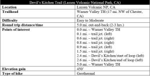 Devils Kitchen Trail Lassen hike information Warner Valley